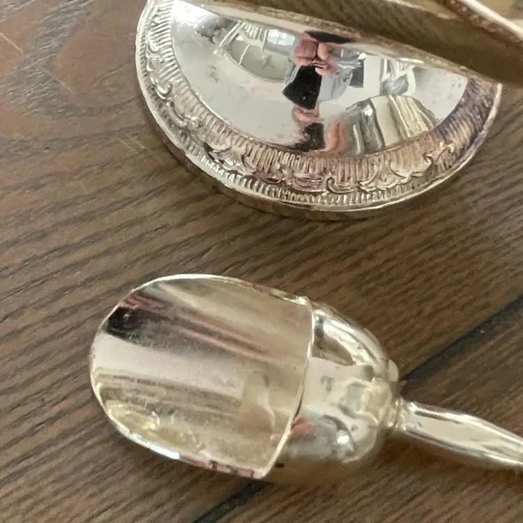 Vintage Silverplate Sugar Scuttle with Scoop Tarnish Resistant 5.5" tall Normal vintage age condition with some marks Lovely piece. Great for your holiday table!