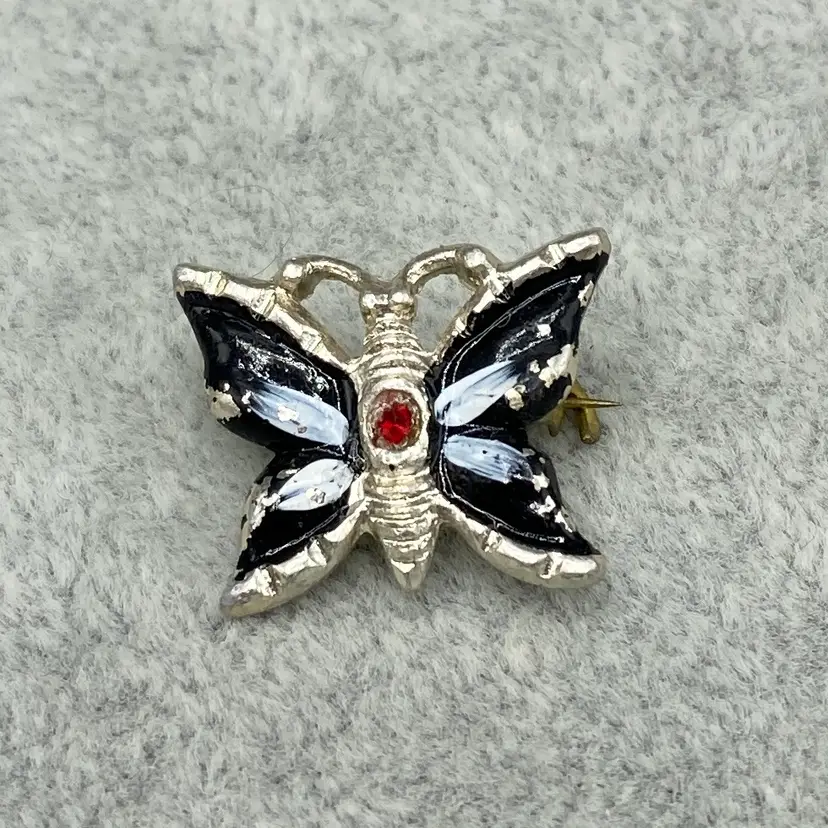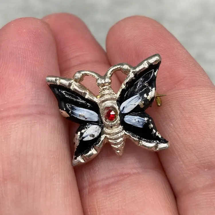 This brooch is in good overall condition, there is some paint loss, please see pictures for specifics. It measures approximately 3/4" x 3/4".