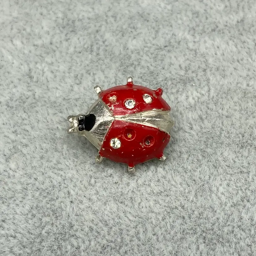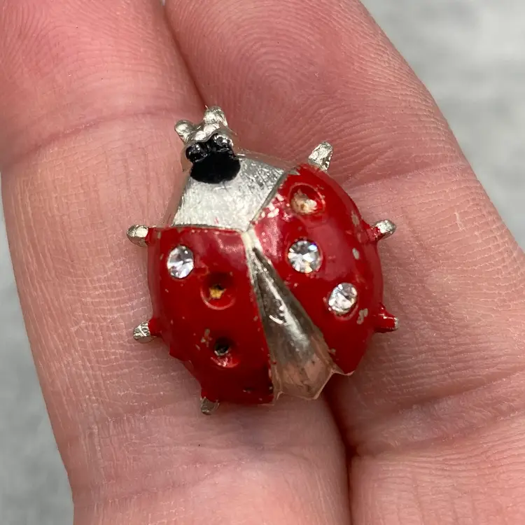 This brooch is in fair condition; it may have some paint loss on the head and there are a few stones missing. It measures approximately 3/4" x 3/4".