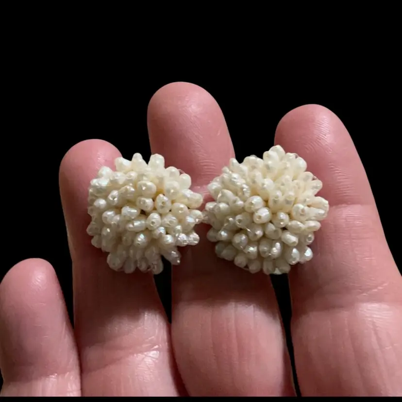 Vintage Silvertone Shell Bead Cluster Clip Earrings . Not Signed.