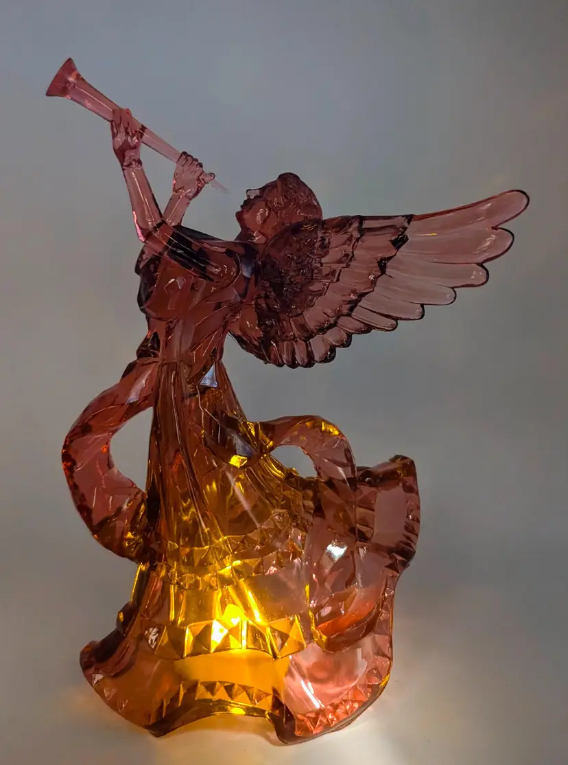 Excellent Used Condition. No chips or cracks. 9.25" high x 6.5" long x 6" wide. It is a tree topper but is heavy and may be better suited as figure centrepiece decor to add a flameless candle to glow. See pictures for details.