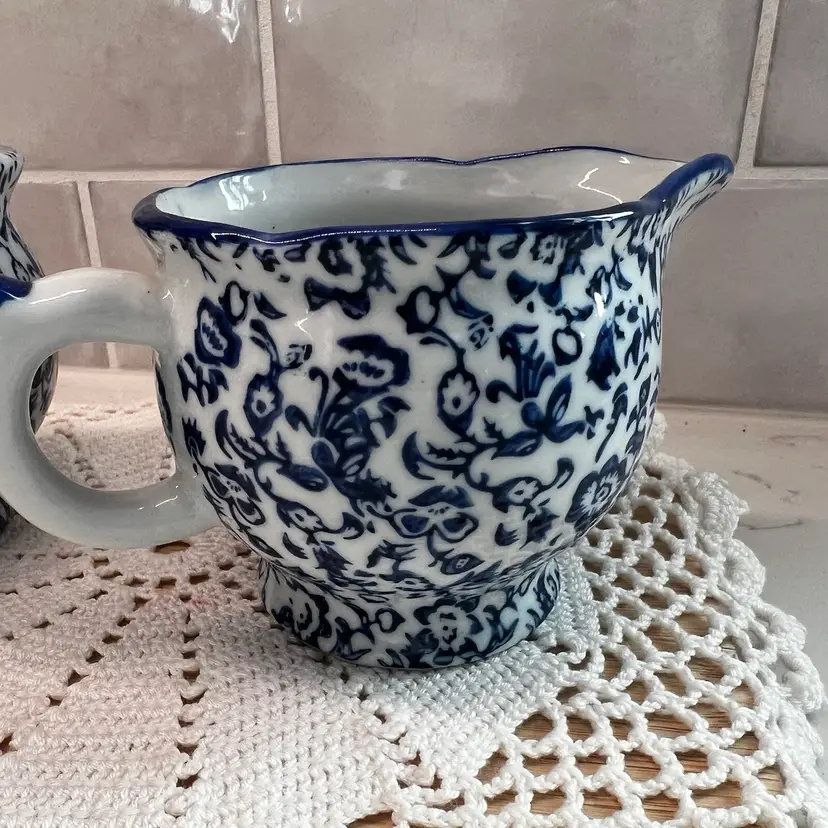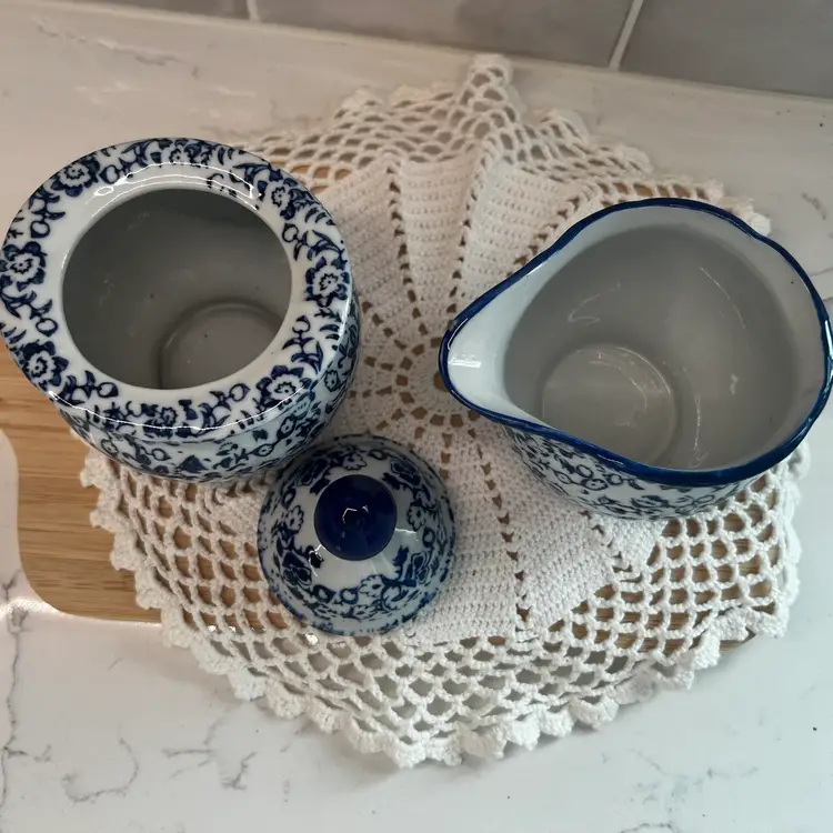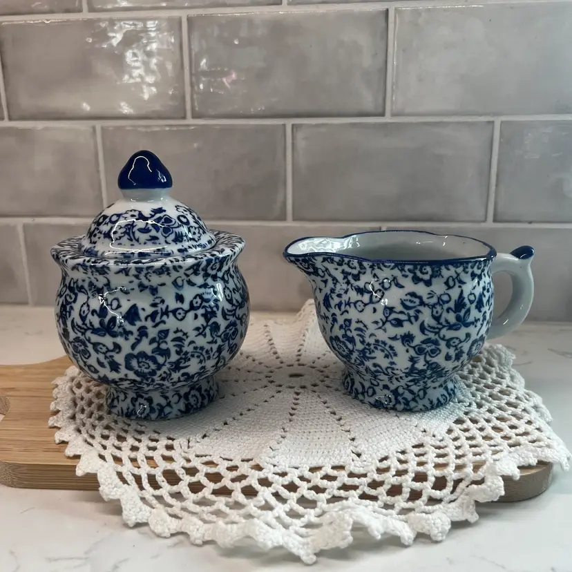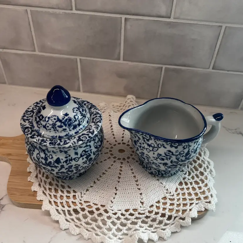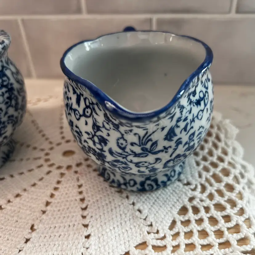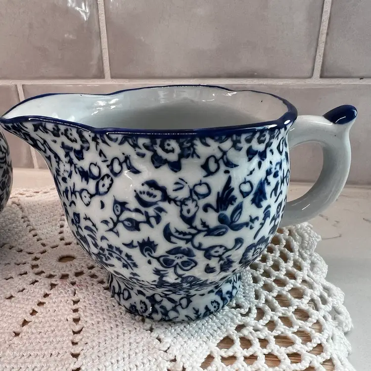 Beautiful vintage Silvestri Creamer Pitcher & Lidded Sugar Bowl, Made In China, excellent condition.