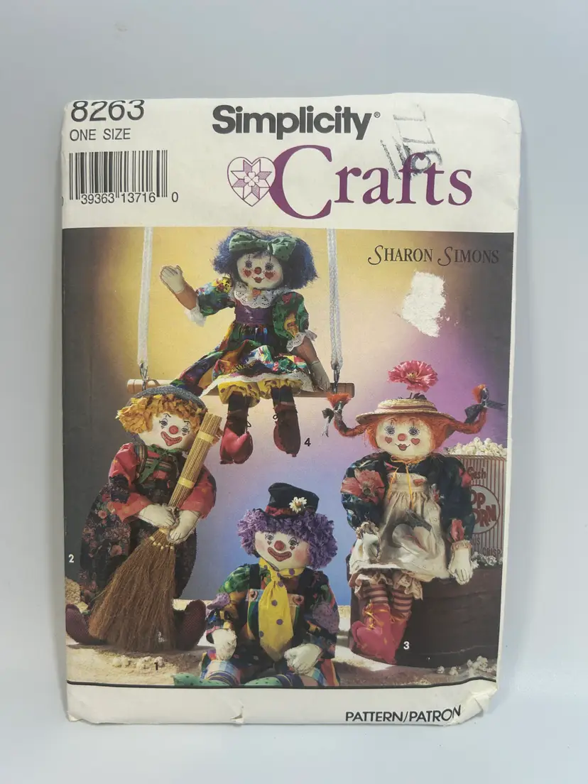 Items to be made with patterns: Sharon Simons Decorative Boy and Girl Clown Dolls