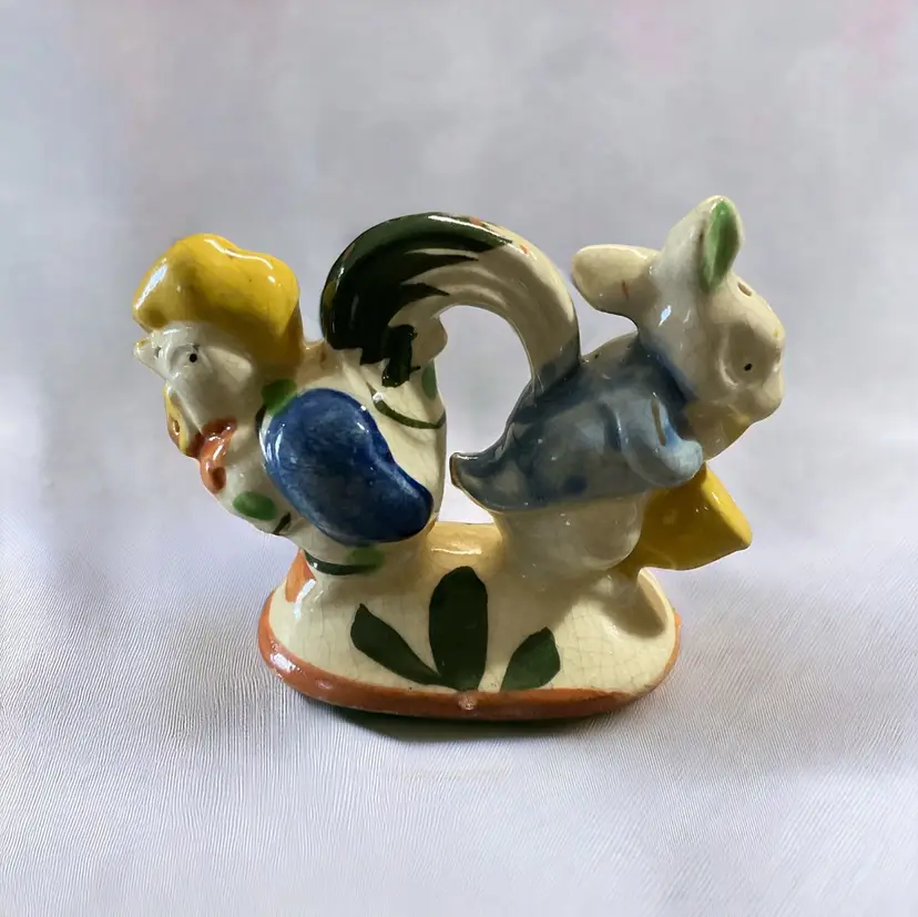 Spice up your kitchen with this vintage salt and pepper shaker set featuring a cute singing chicken and rabbit playing the saxophone. Imported from Japan, this collectible item is perfect for any occasion and adds a touch of whimsy to your dining experience. Whether you're a fan of One Piece or just love unique kitchen gadgets, this shaker set is a must-have for your collection.
