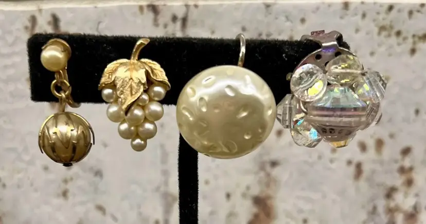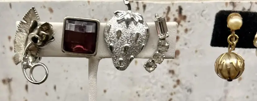 See PHOTOS! Earrings might not have earring backs. Jewelry might have rubs, tarnished metal, missing stones.They may not be cleaned.