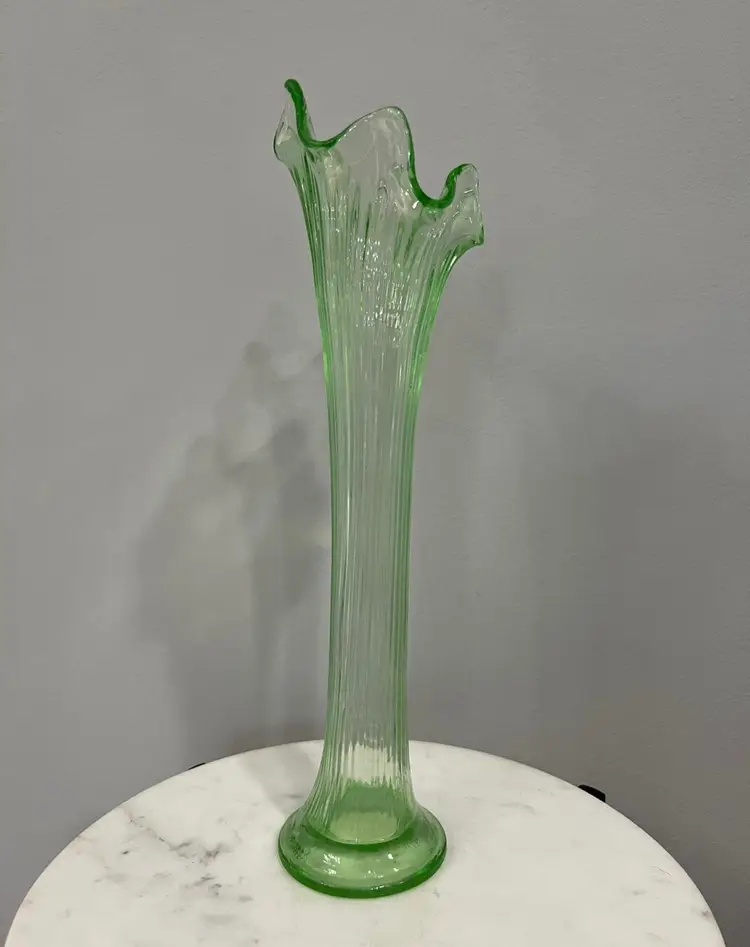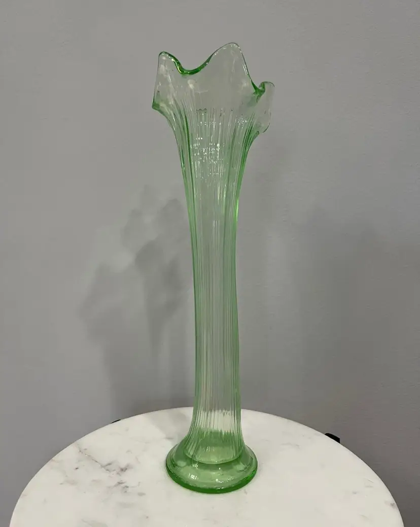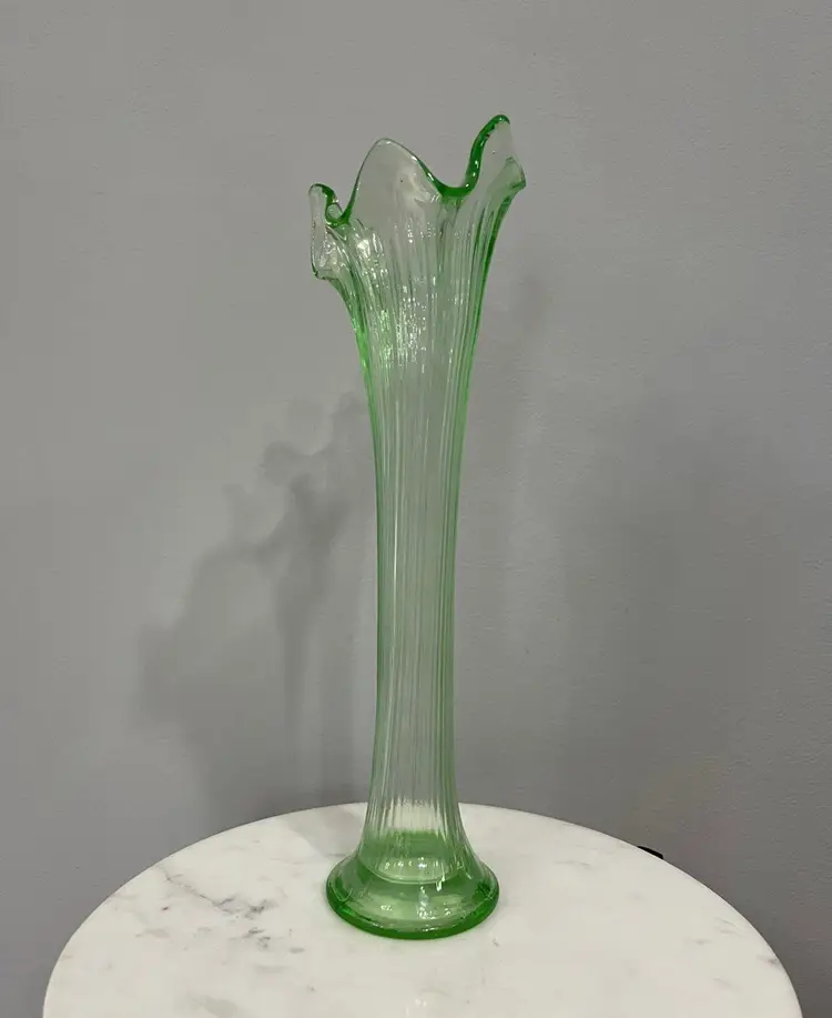 Good preowned condition with no chips or cracks. Some bubbles within the glass as shown. Measures 11.5” tall and 3.5” wide. Message me with any questions.