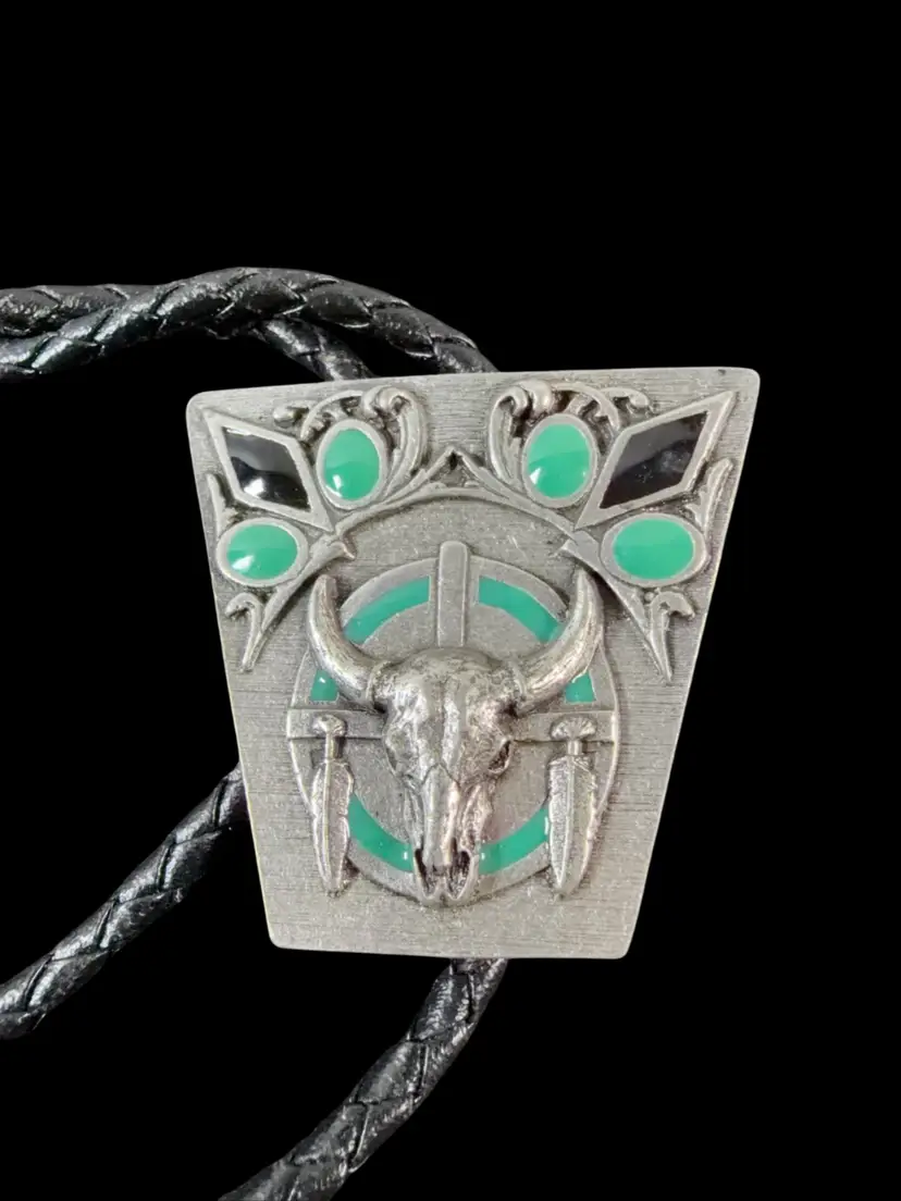 Vintage Siskiyou Buckle Co. Pewter Cow Skull Bolo Tie