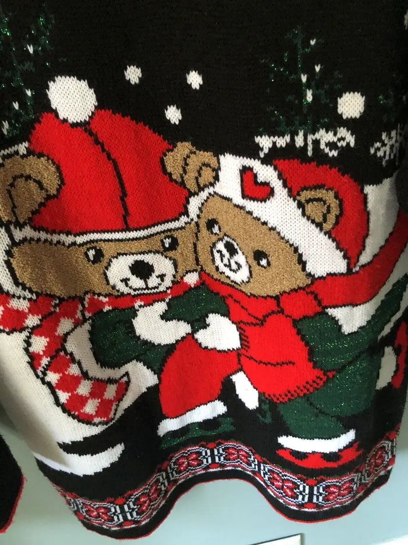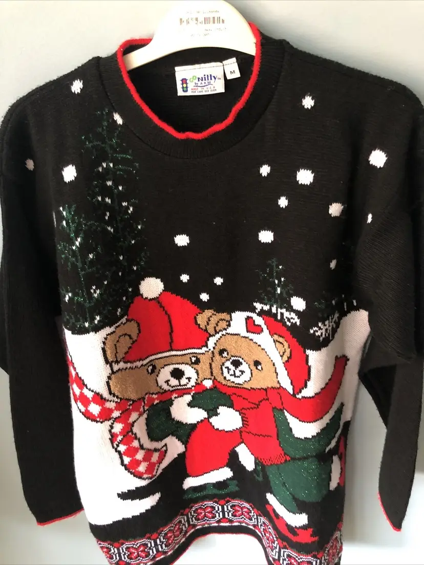 Pattern: Ugly Christmas Knit Style: Chunky-Knit Sleeve Length: Long Sleeve Character: Dog Neckline: Crew Neck Occasion: Party/Cocktail Size: M Color: Black Sleeve Type: long Material: 100% Acrylic Fabric Type: Knit Accents: Embroidered, Vibrant Colors Vintage: Yes Brand: Vintage Fit: Relaxed Size Type: Regular Department: Women Type: Sweater Style: Pullover Theme: Holiday, Christmas, Bears Features: Graphic Print Season: Winter Country/Region of Manufacture: Unknown Character Family: Ugly Christmas Sweater