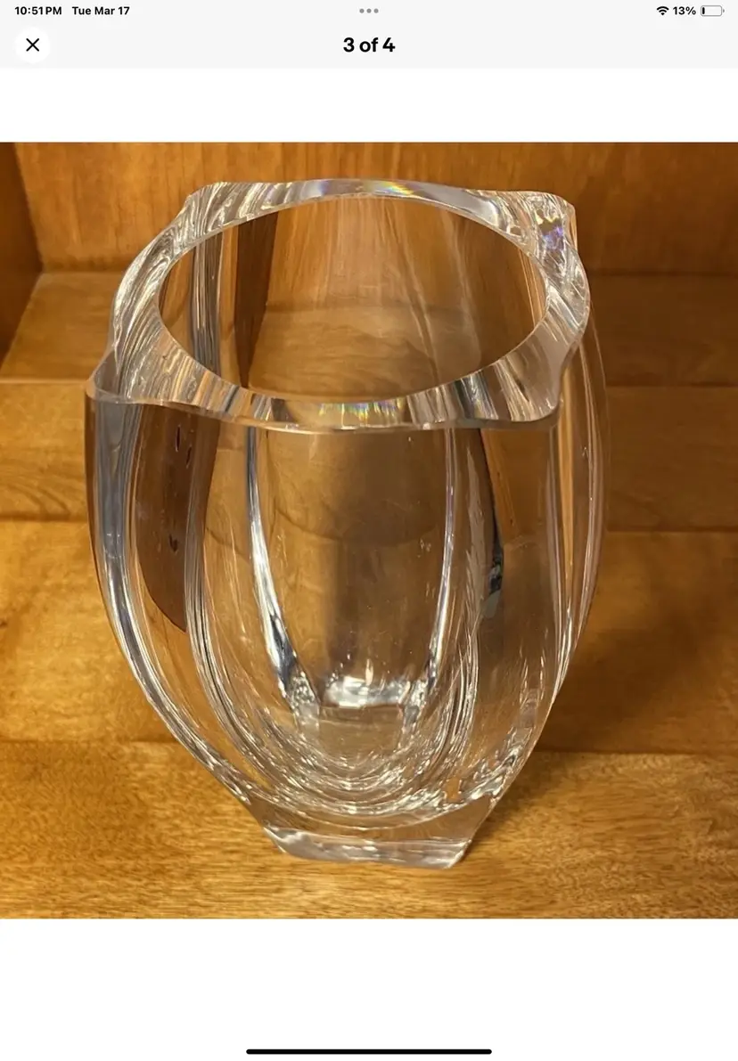 This vintage Skrufs Glasbruk Swedish etched glass vase features a beautifully etched ship.