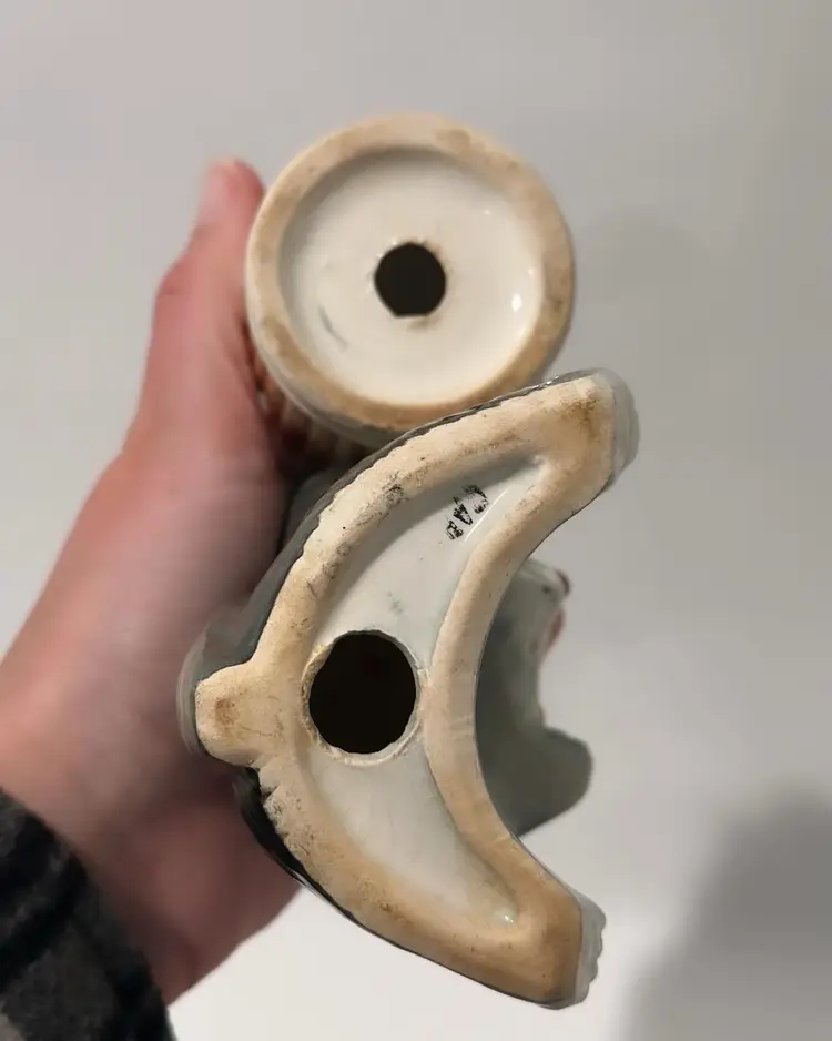 Condition: a few tiny chips on skunk legs Dimensions: 4.5” tall x 3.5” wide with trash can.