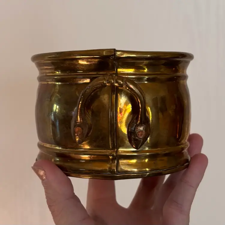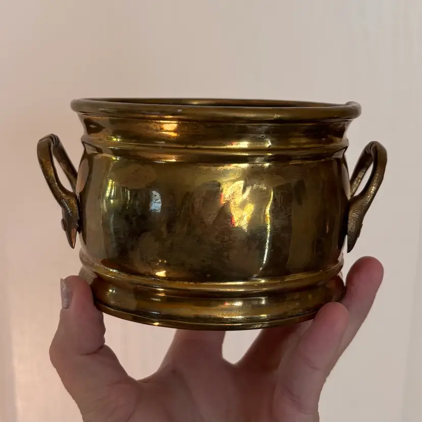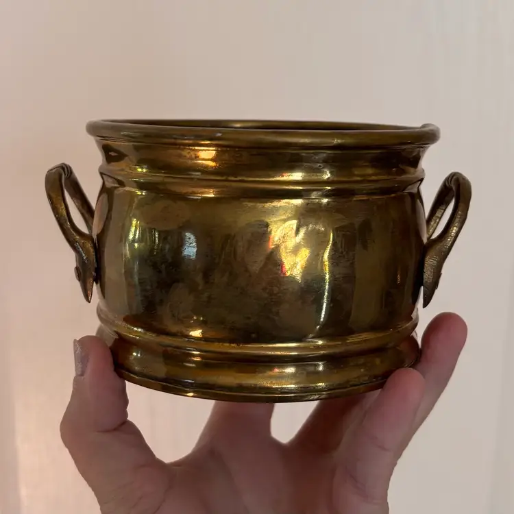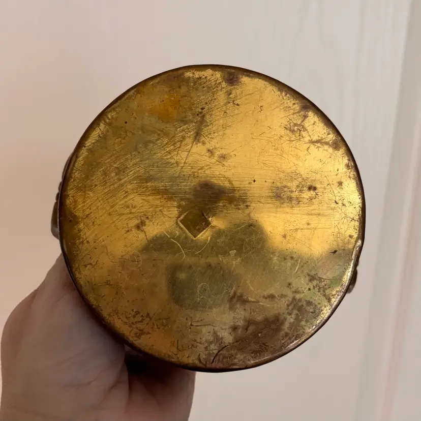 3”tall x 4 1/2”wide Vintage wear & patina as shown- tarnishing inside & bottom