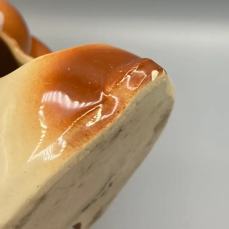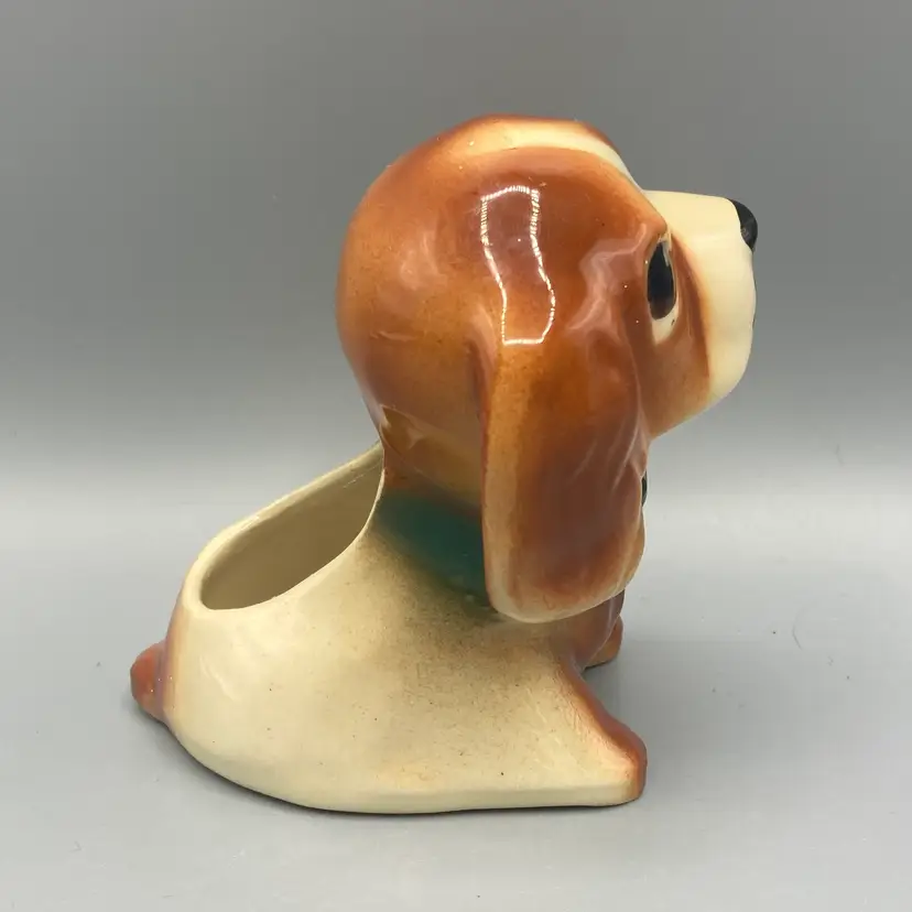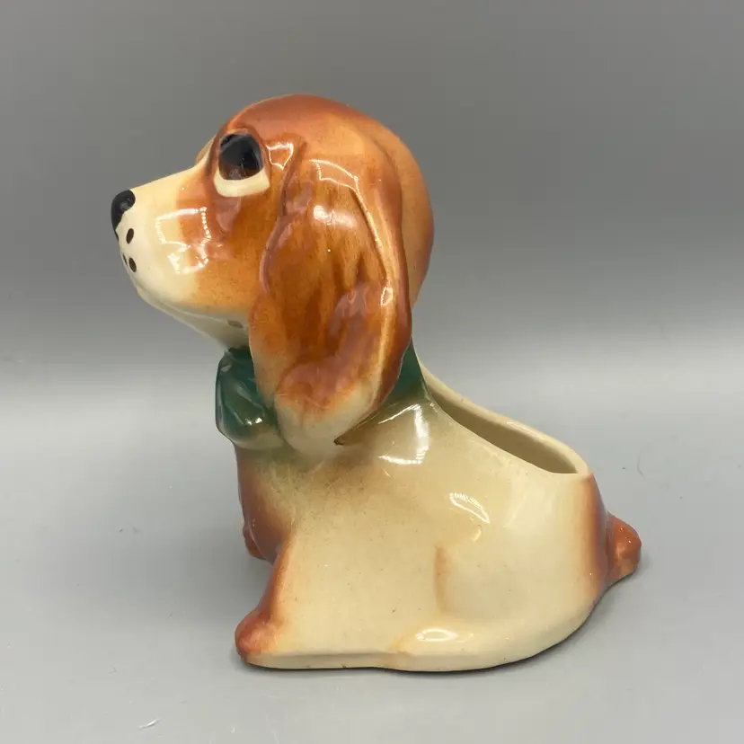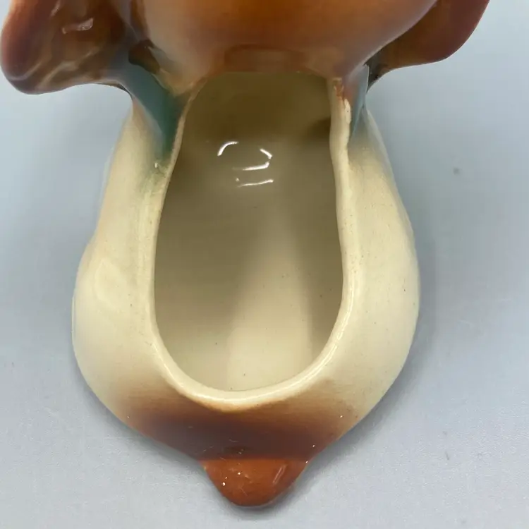 This planter is in good condition; it does have a flea bite chip on the tail. It measures approximately 3 3/4" tall x 4 1/2" deep x 2 3/4" wide.