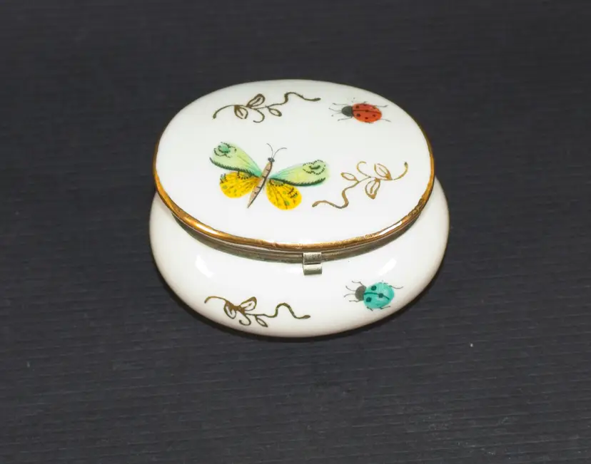 Vintage Small Ladybug Dragonfly Trinket Box Porcelain Ardalt Japan. In good condition. 2" wide x 2.5" long x 1.5" tall