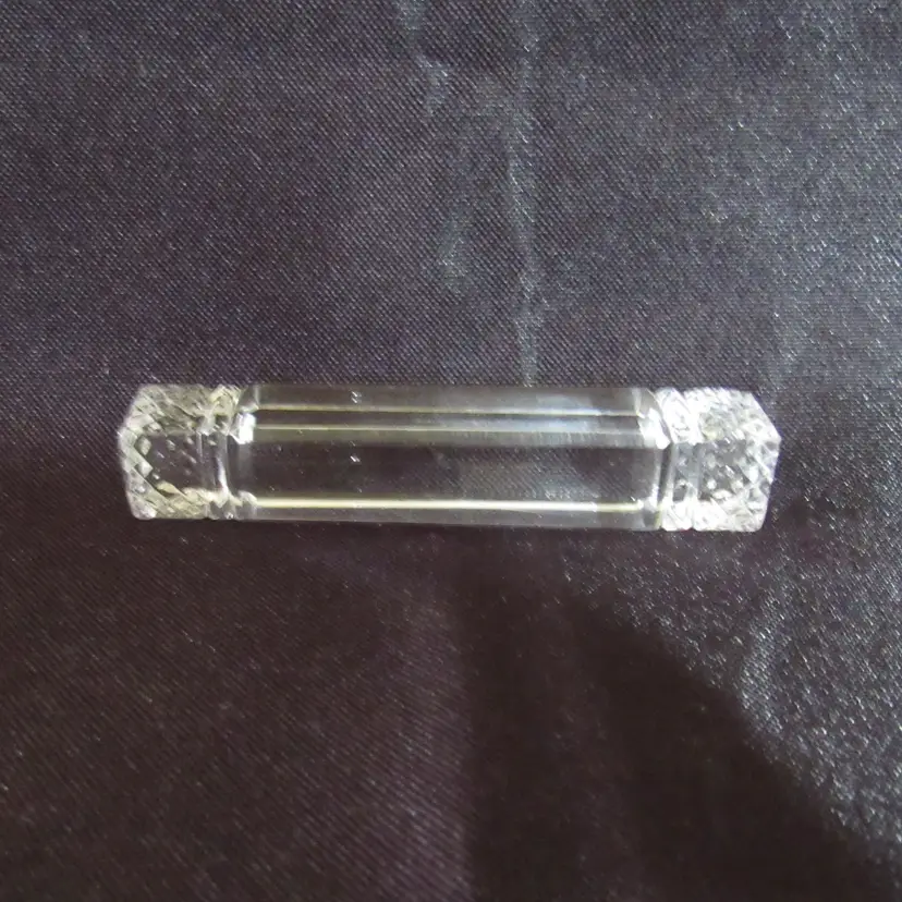 Vintage Small Square Glass Knife Rest No marks. Approx. 3 1/4" long x 3/4" square. Comes to a point on each end Excellent condition with no chips, cracks or breaks
