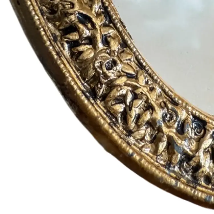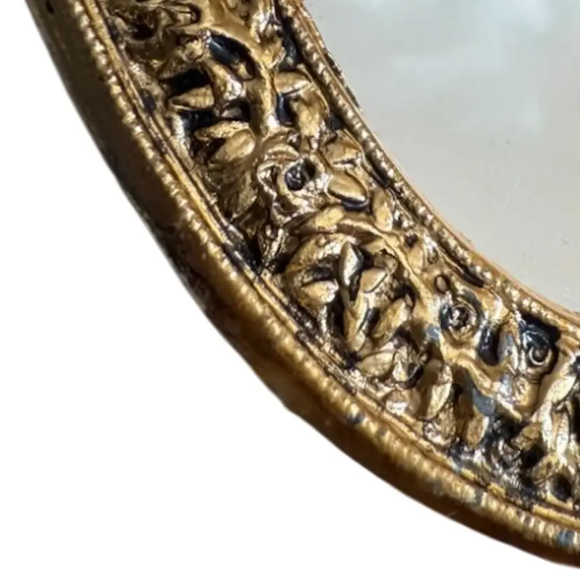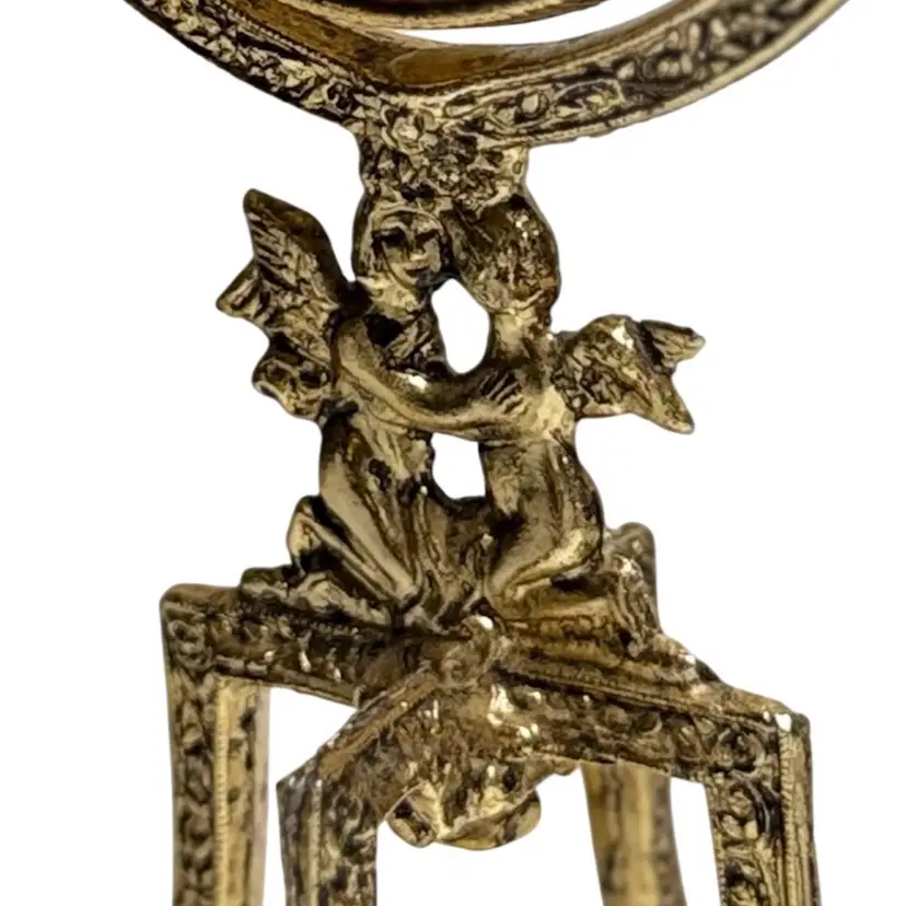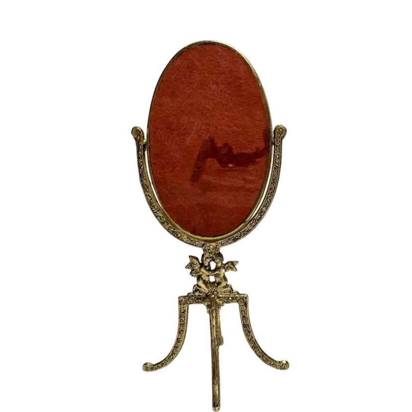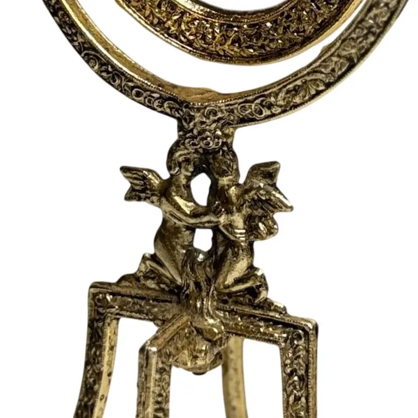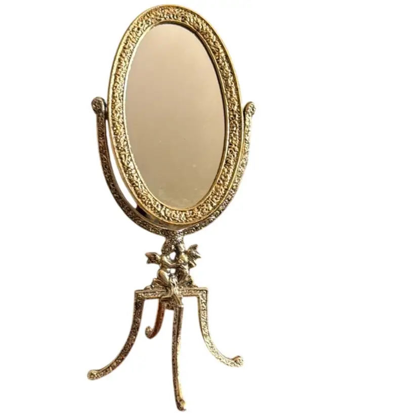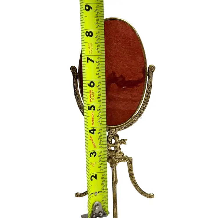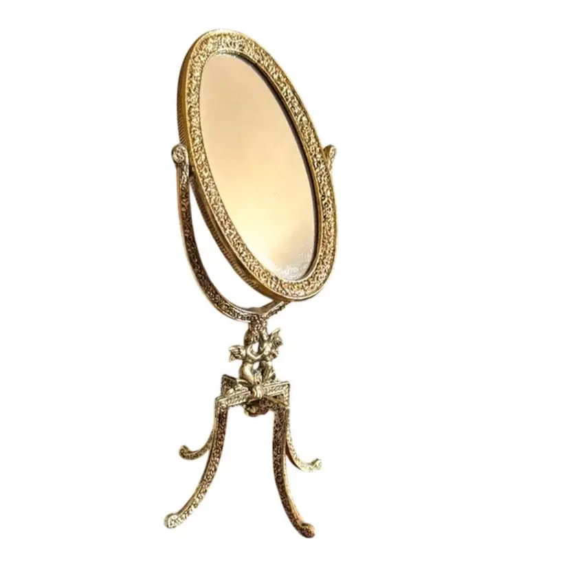 Ornate vanity mirror with two cherubs, one facing each direction. Unsure if it is gold tone or gold plated. Approximately 1970’s or earlier.