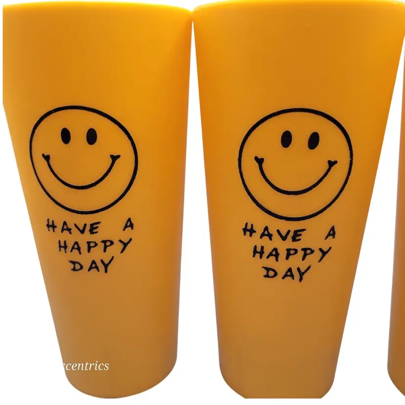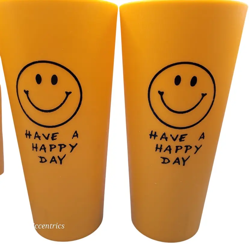 Brighten up your day with this cheerful set of vintage tumblers featuring a classic smiley face and 'Have a Happy Day' message. Perfect for adding a touch of retro joy to your kitchenware collection. 💛 All items are packaged with care to ensure safe delivery. #nosadmail ✴️ Follow my Facebook page & IG for more curated vintage treasures! ⚡️ #MrEccentrics #vintagecurator #vintagestyle