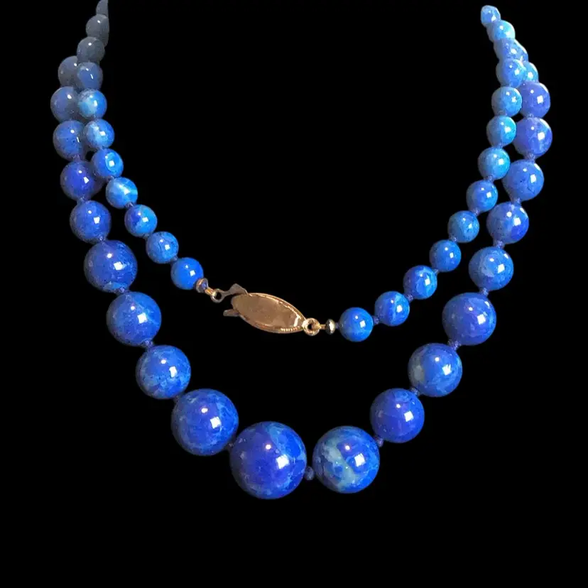 25” graduated stone hand knotted beads, fishhook closure. #473