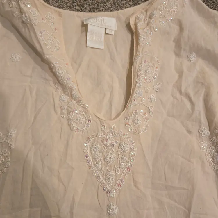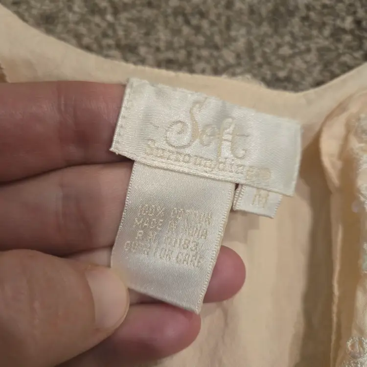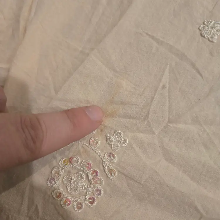 In good condition. One of the earliest pieces. 100 percent cotton. Has some spots as pointed out in pictures. Please see pictures for more details.