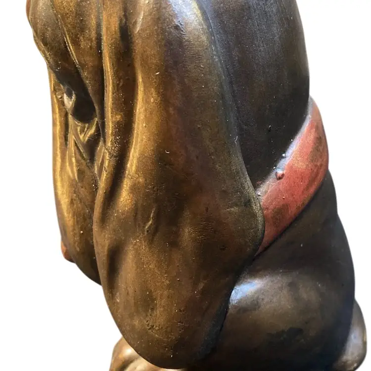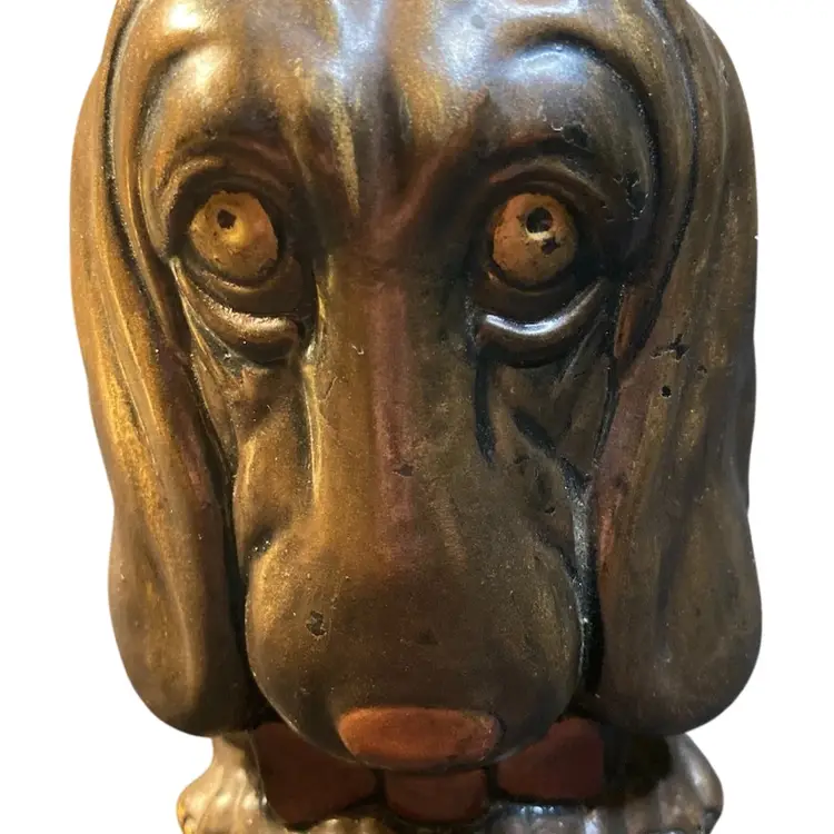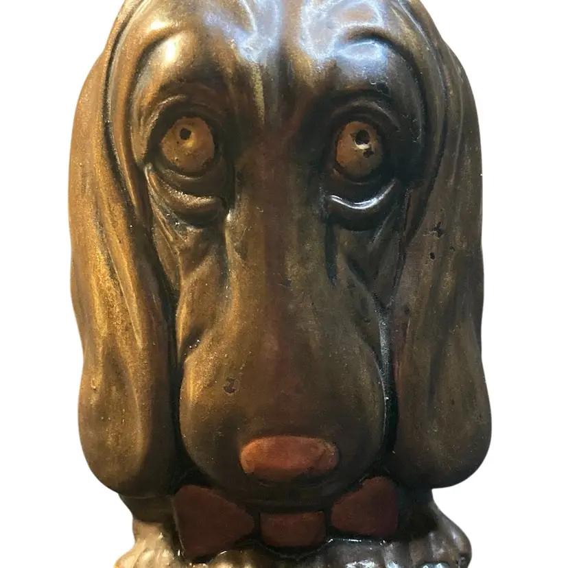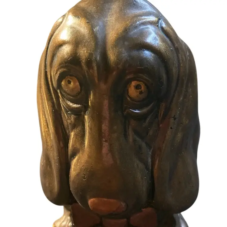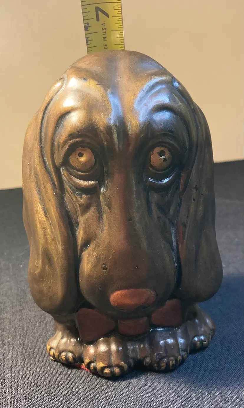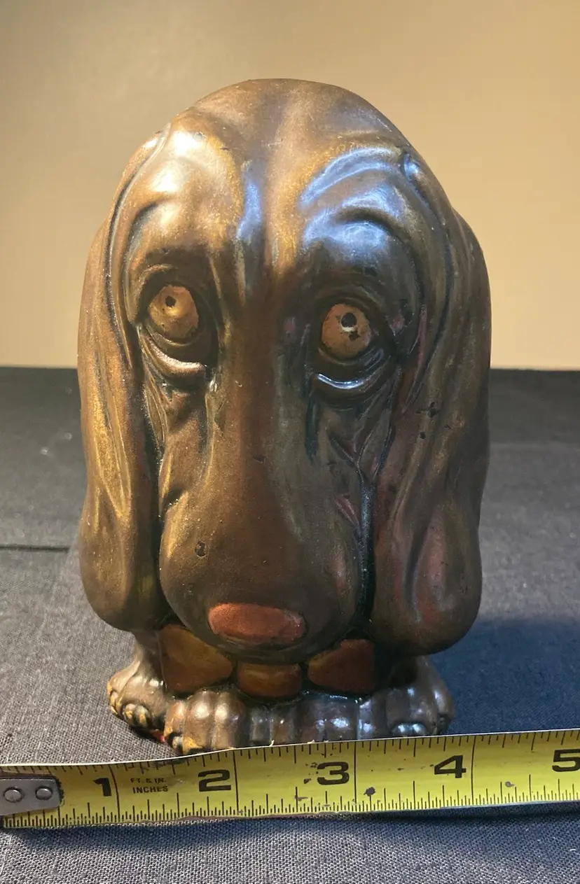 This puppy is begging you to take him home. Such a unique personality. This is a solid figurine measuring 6 1/2 inches tall and 4 inches wide. He is a little on the heavy side. Coming in over a pound and a half.