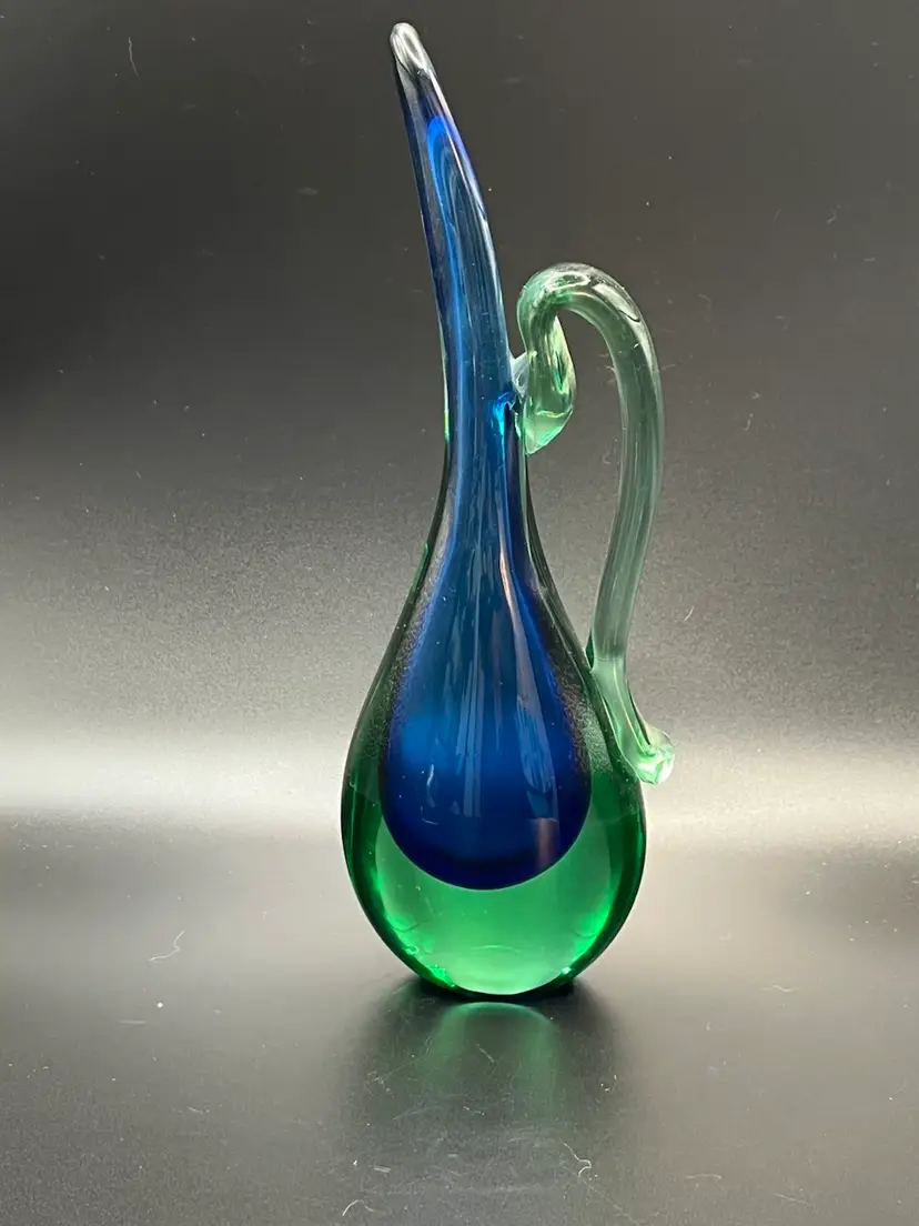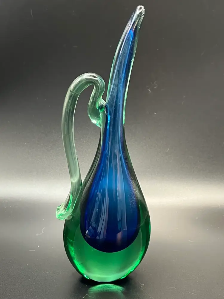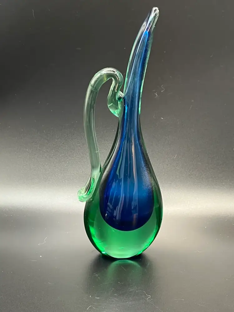 Beautiful Murano Sommerso blue green glowing Bud vase/ pitcher. Excellent condition no chips or cracks. 8” tall.