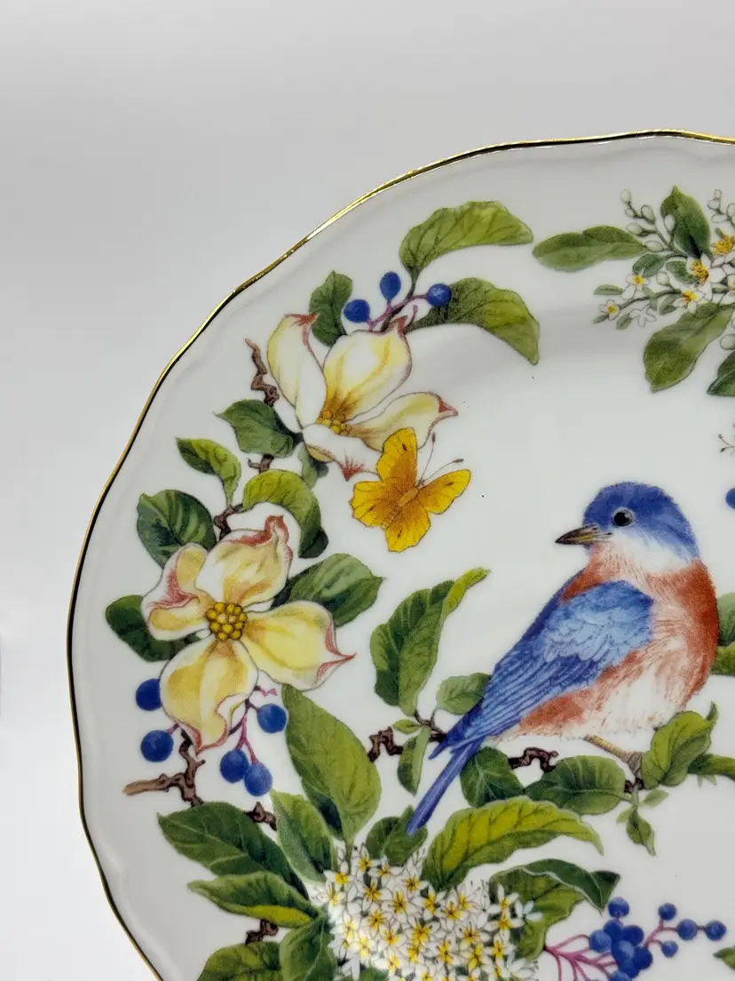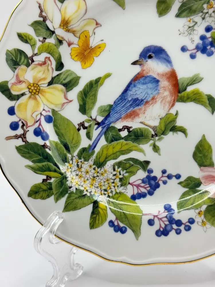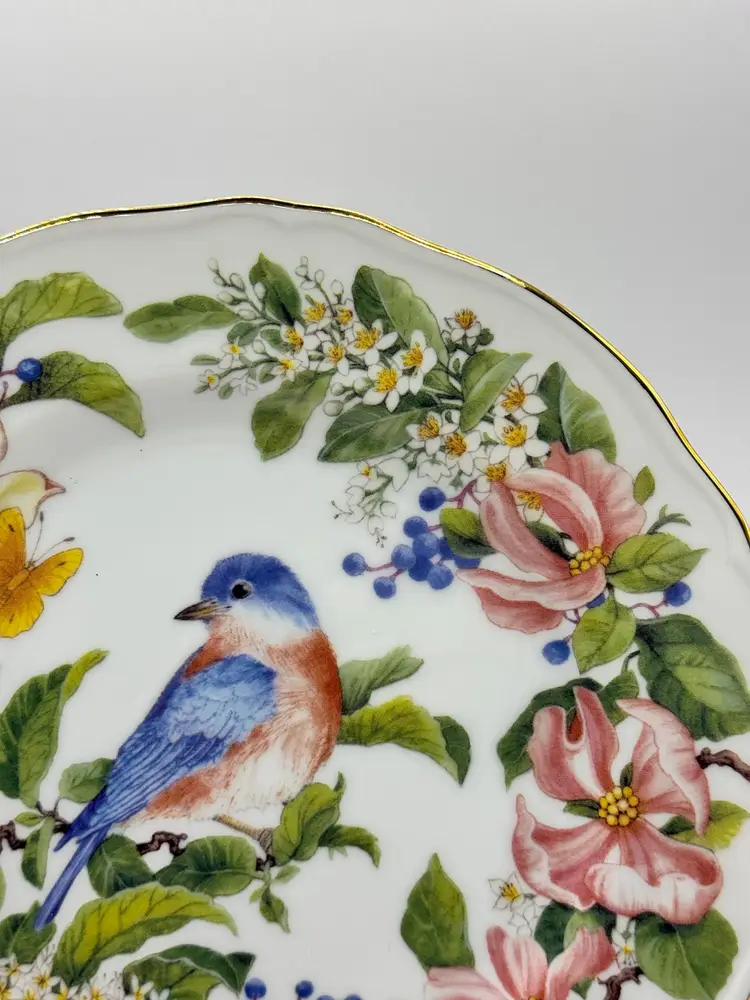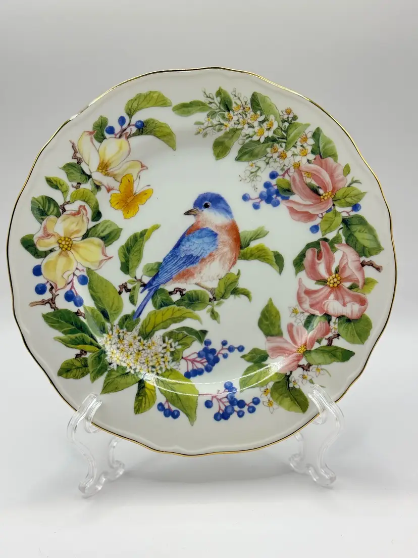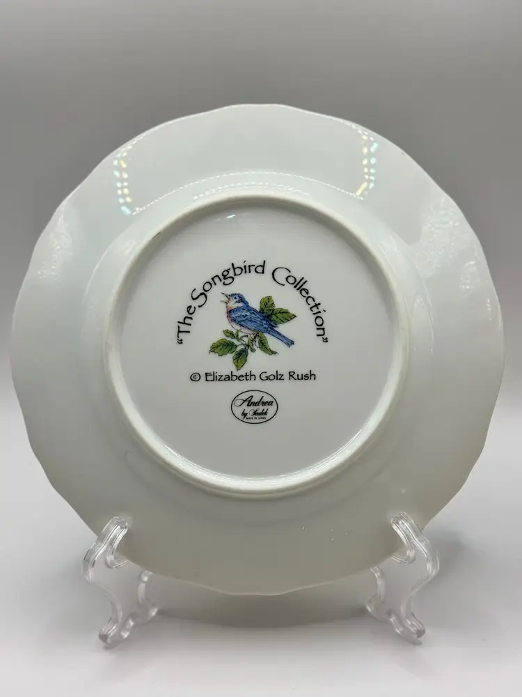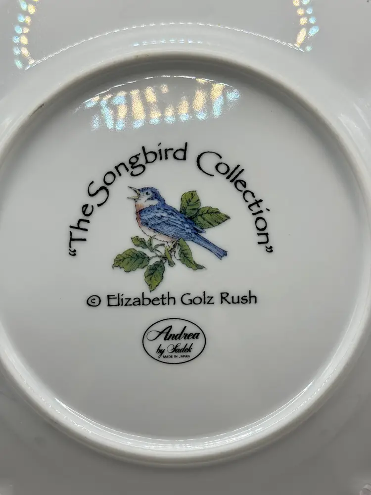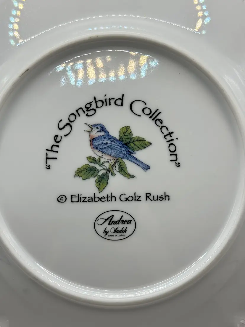 Vintage Songbird Collection Robin bird plate wall hanging, colorful hand painted, by Elizabeth Golz Rush, for Andrea Sadek, made in Japan. Very pretty and multicolored design, perfect for any occasion or room. No chips or cracks. Measures 8”. Weighs 1lb.