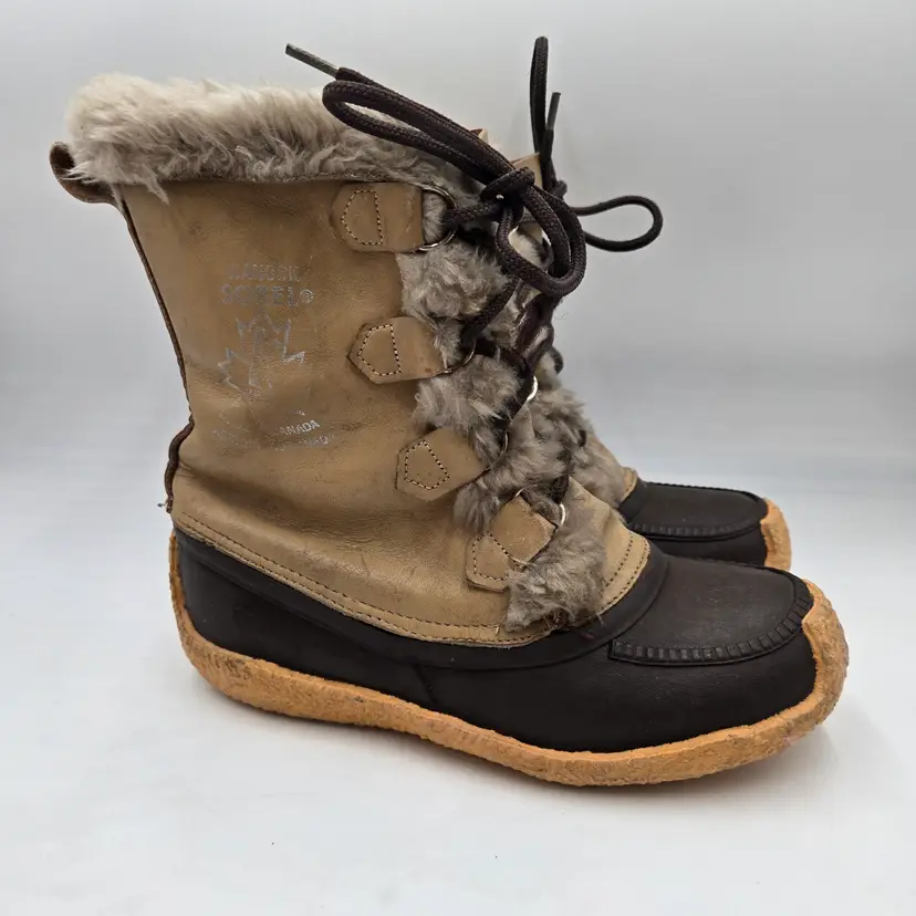 Vintage Sorel Nanook Winter Snow Boots Wmns Sz 7 Brown Leather Waterproof Canada