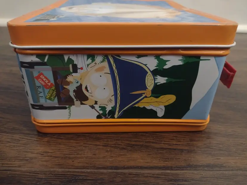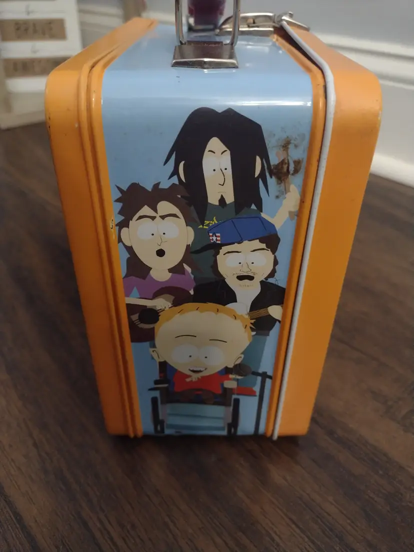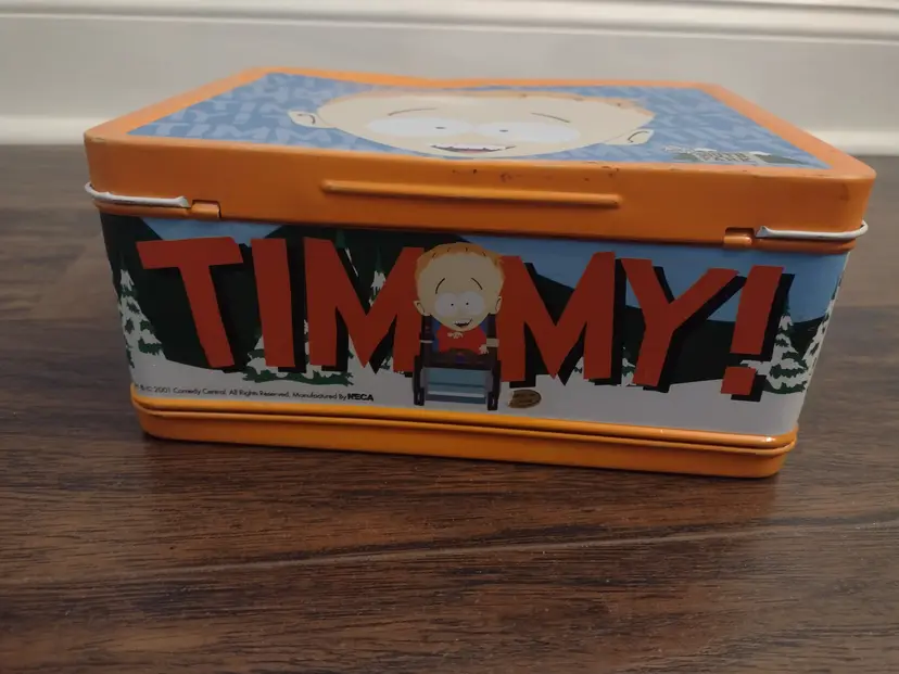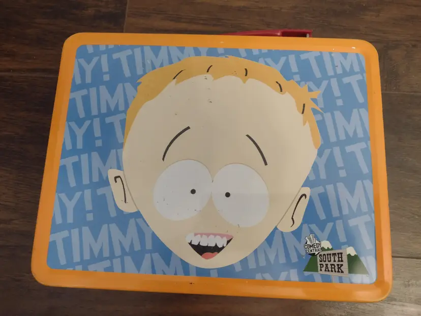 Vintage South Park Timmy metal lunchbox with thermos, box is in fair to good condition, thermos appears to be unused.
