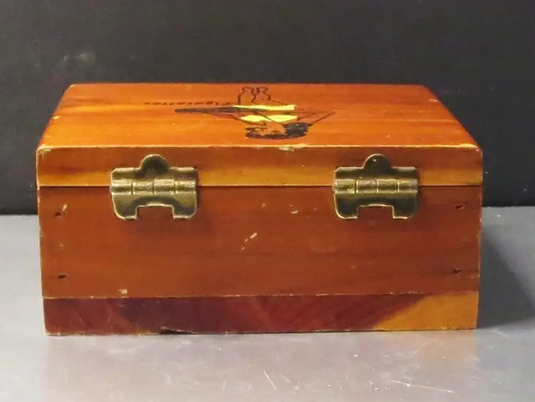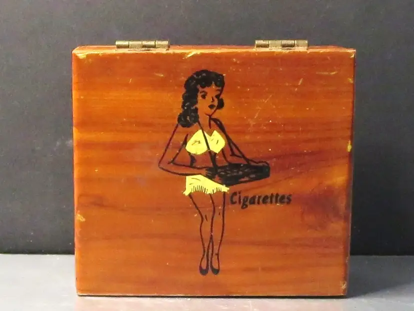 Originally for cigarettes, can now be a trinket storage box, collectible piece for home or rv, or in a USA travel vignette.