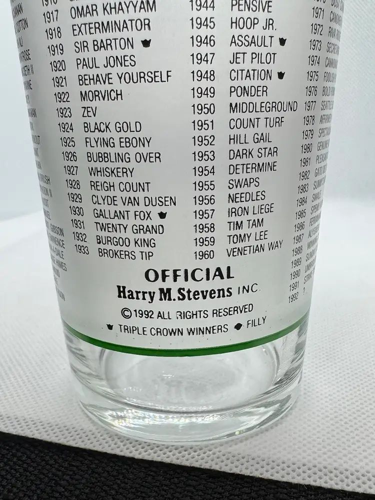 • Commemorates the 118th running of the Kentucky Derby, in 1992. Mint Juleps are the signature drink of the Derby.