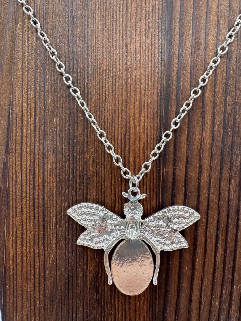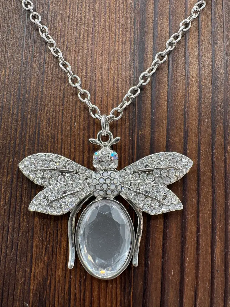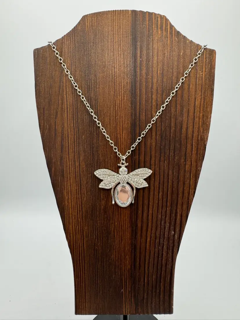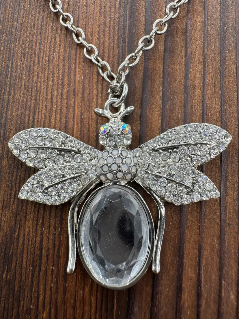 Beautiful vintage sparkling rhinestone bee necklace. Silver tone. Excellent condition. Measures 30 inches with 3 inch extender.