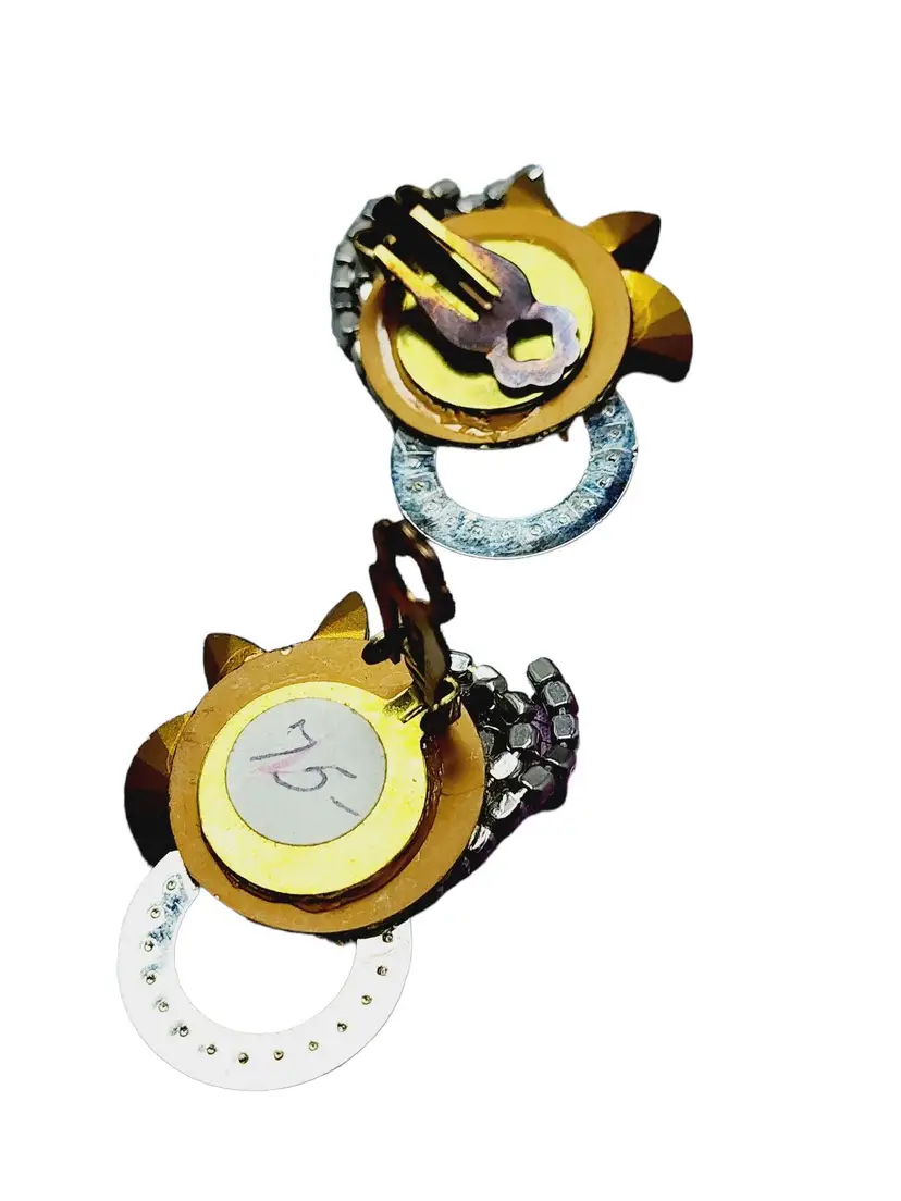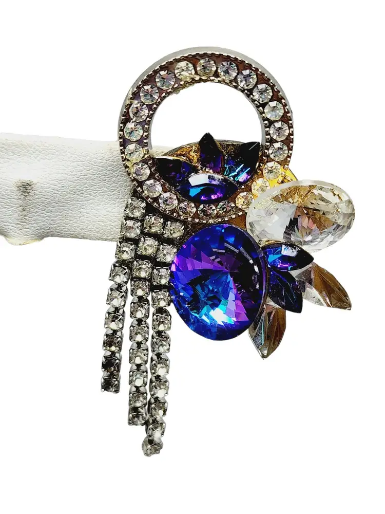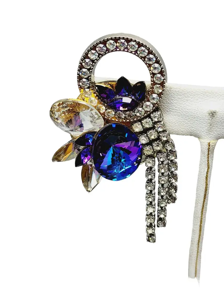 Size: 2.75" Condition: Very good vintage Era: Circa 1980s Signed: None Details: Inverted heliotrope center stone. Amazing pair!