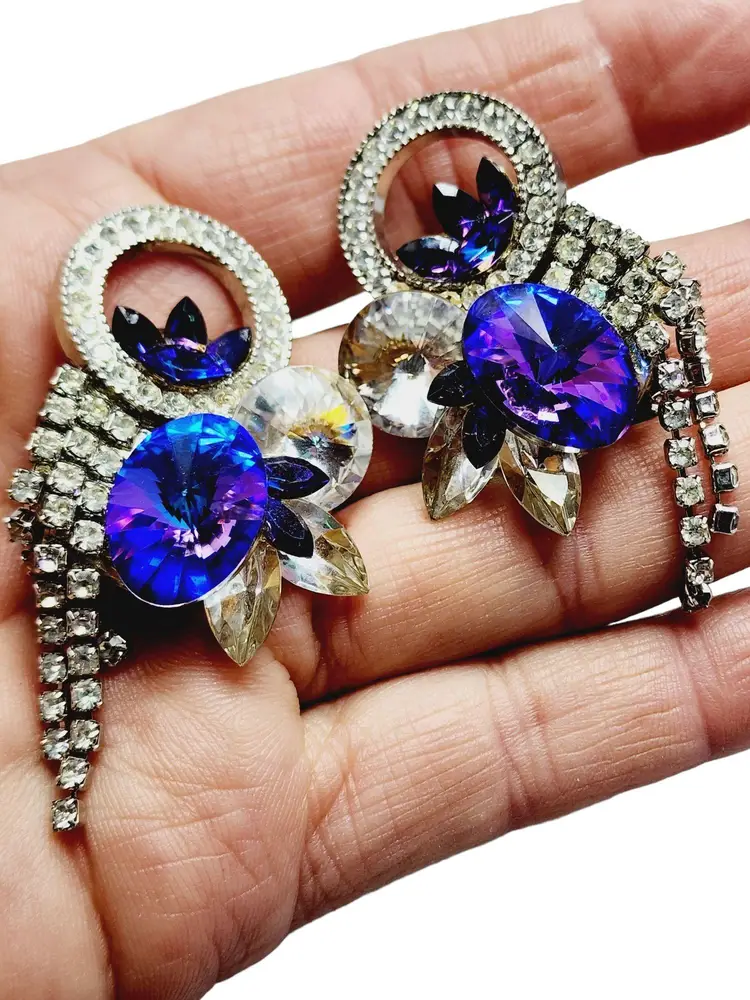 Vintage Spectacular 80s Inverted Glass Earrings (A1186)