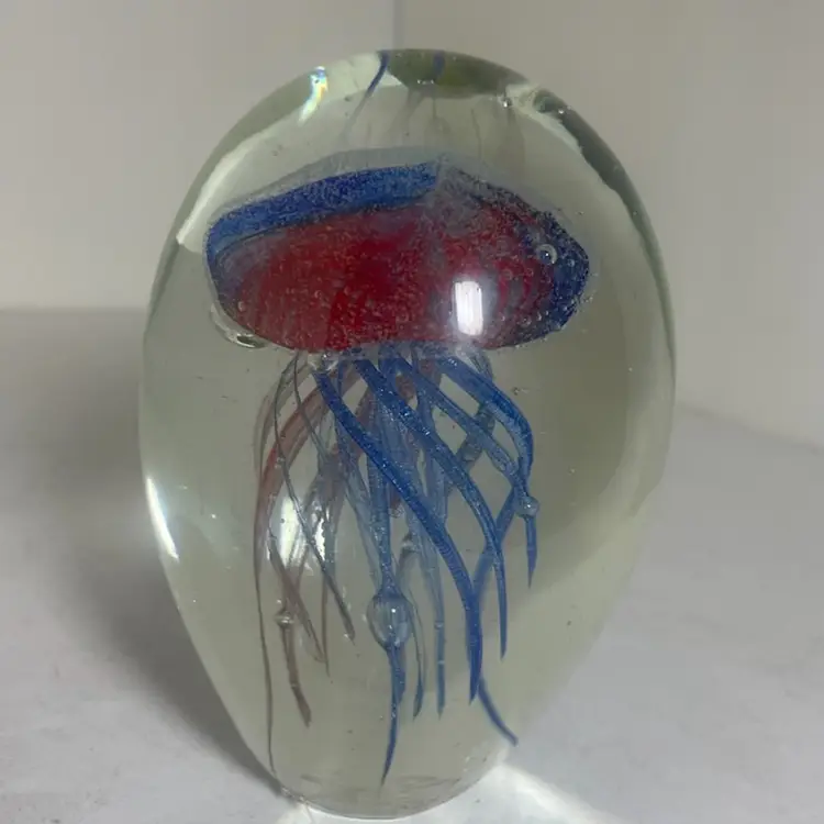 Vintage SPI HOME JELLYFISH Glow In The Dark Art Glass Hand Blown Paperweight. Condition is Used. No scratches! Shipped with USPS Mail