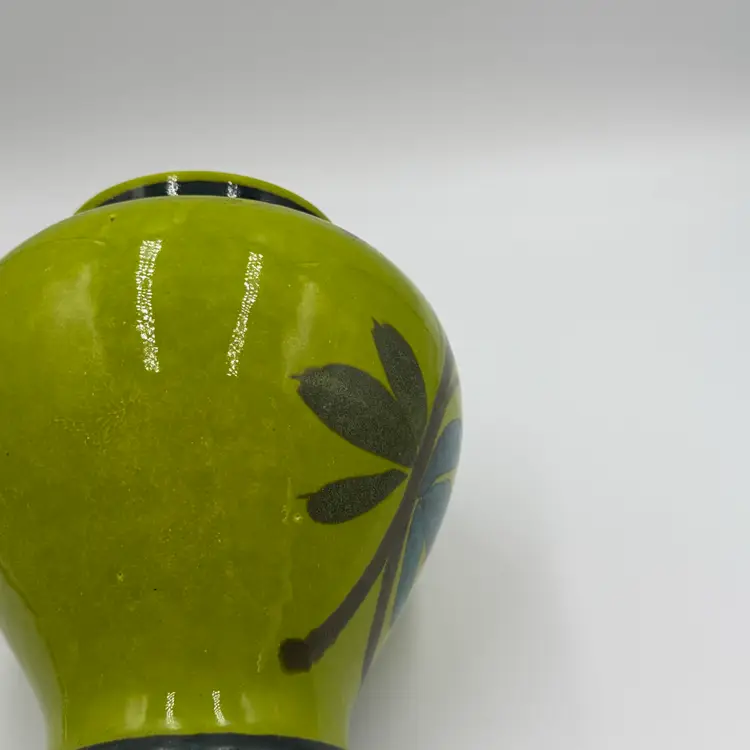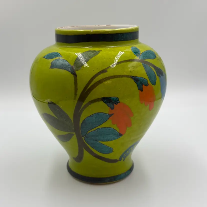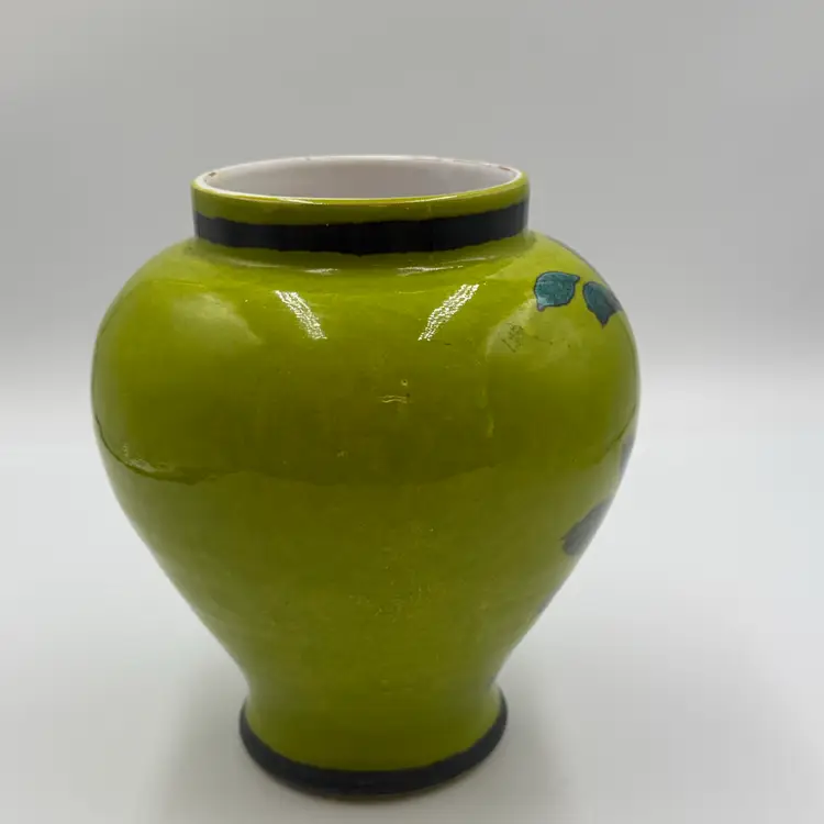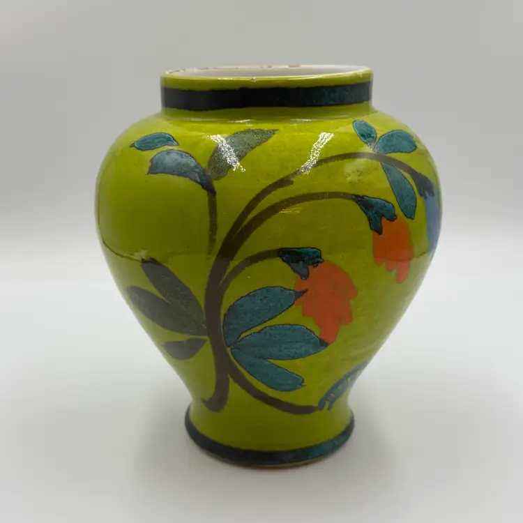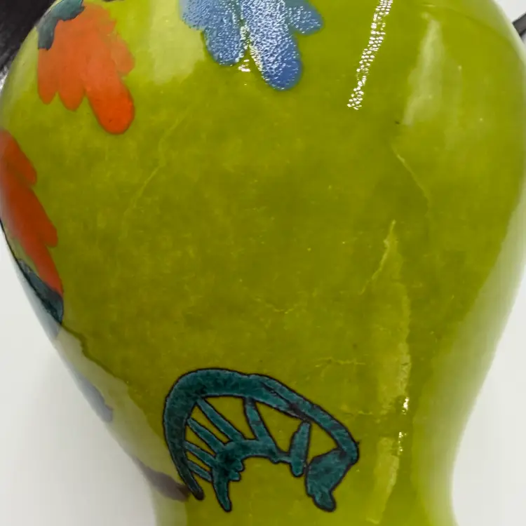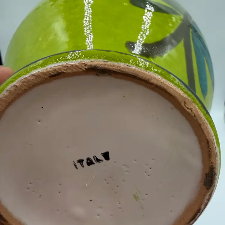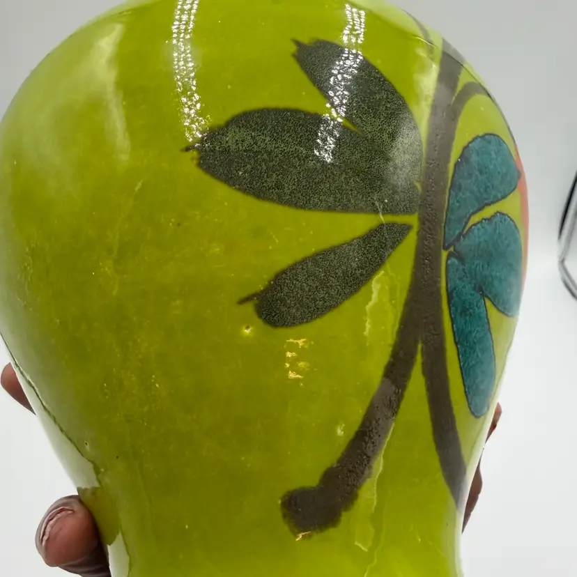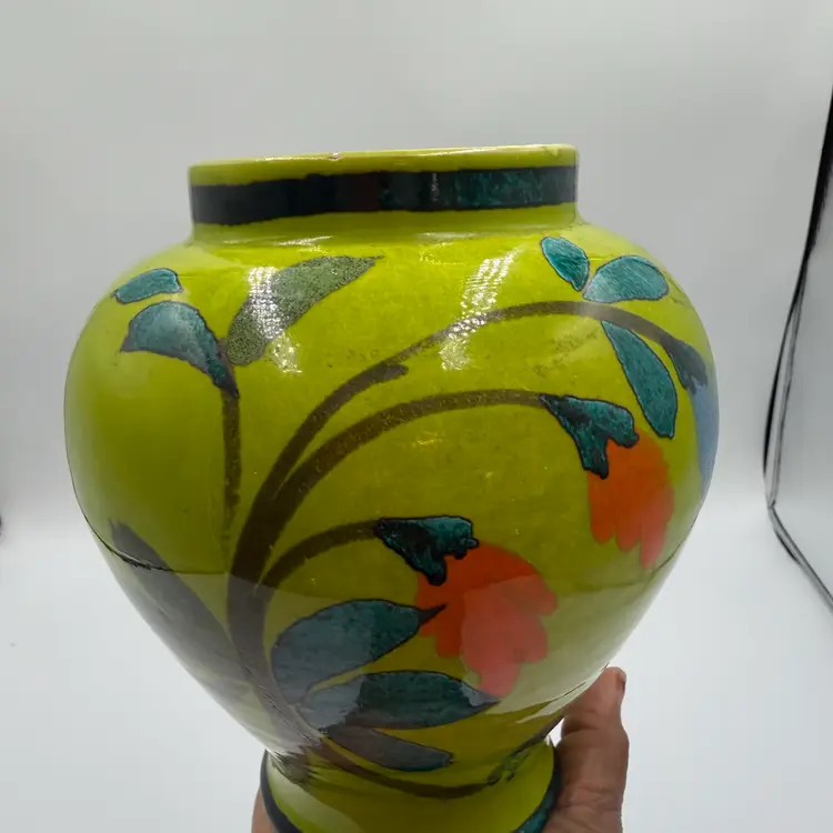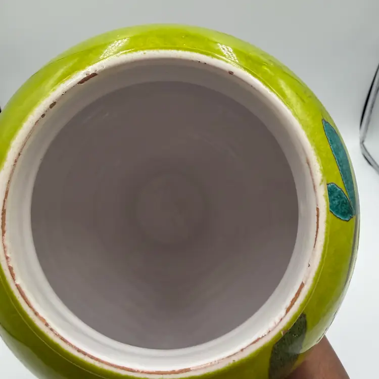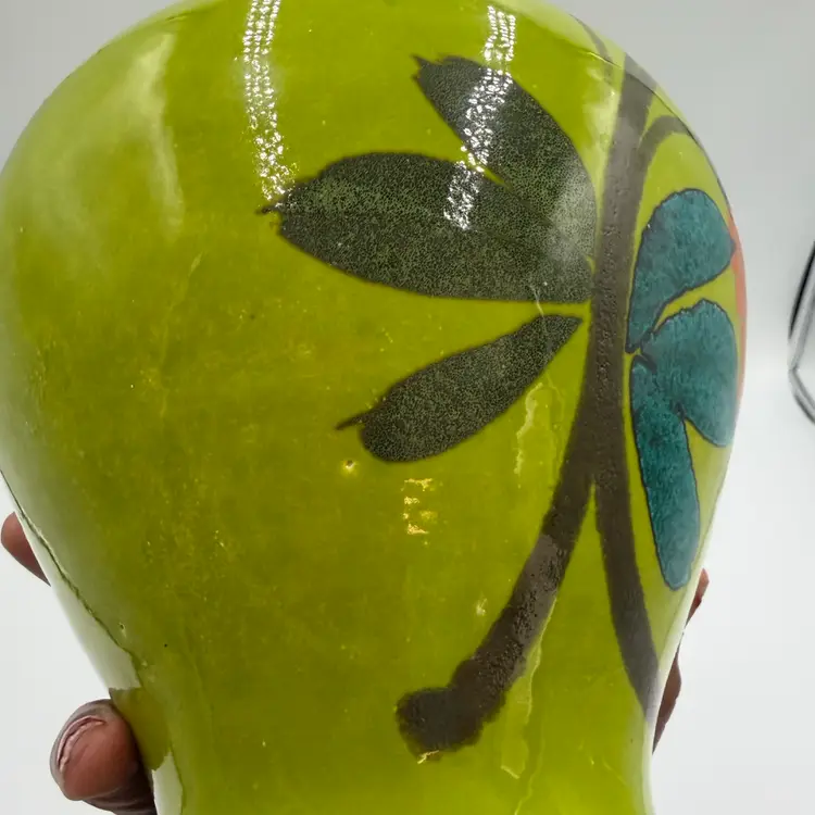 This is a beautiful colorful piece it is approximately 8” tall ( no lid) It is a very unique color from nothing I’ve seen in spice ginger. No chips or cracks in excellent condition