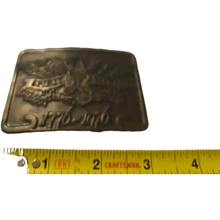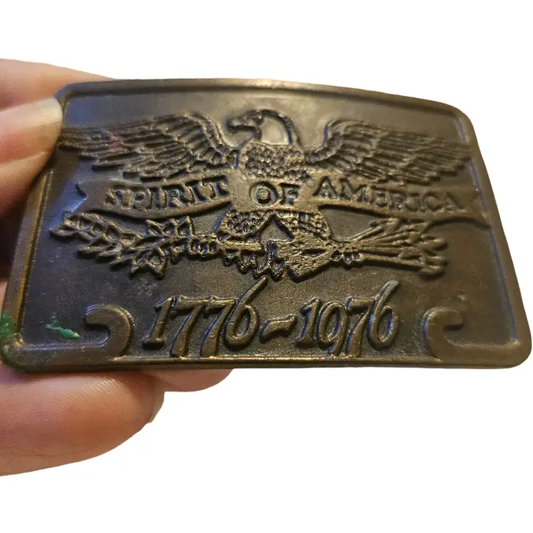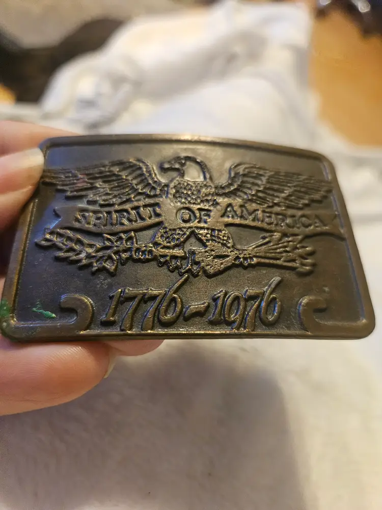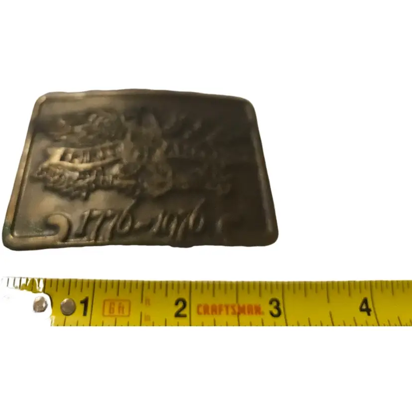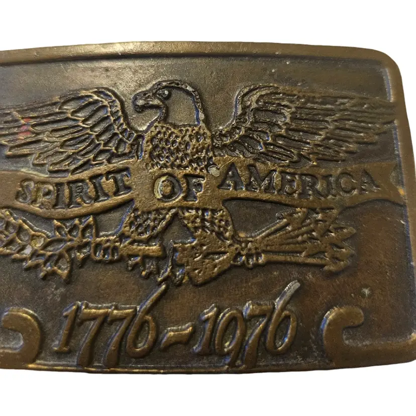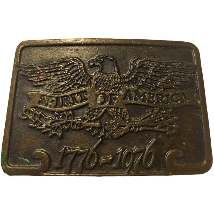 vintage "Spirit of America" bicentennial belt buckle commemorating the 200th anniversary of the United States.