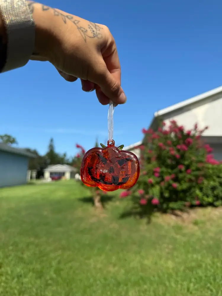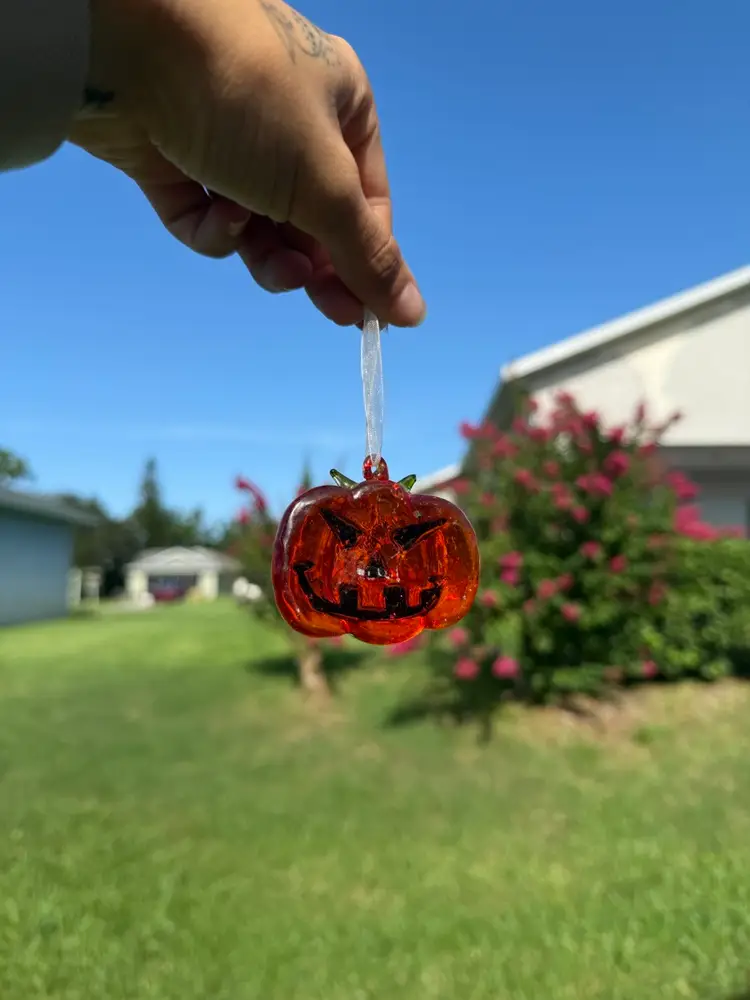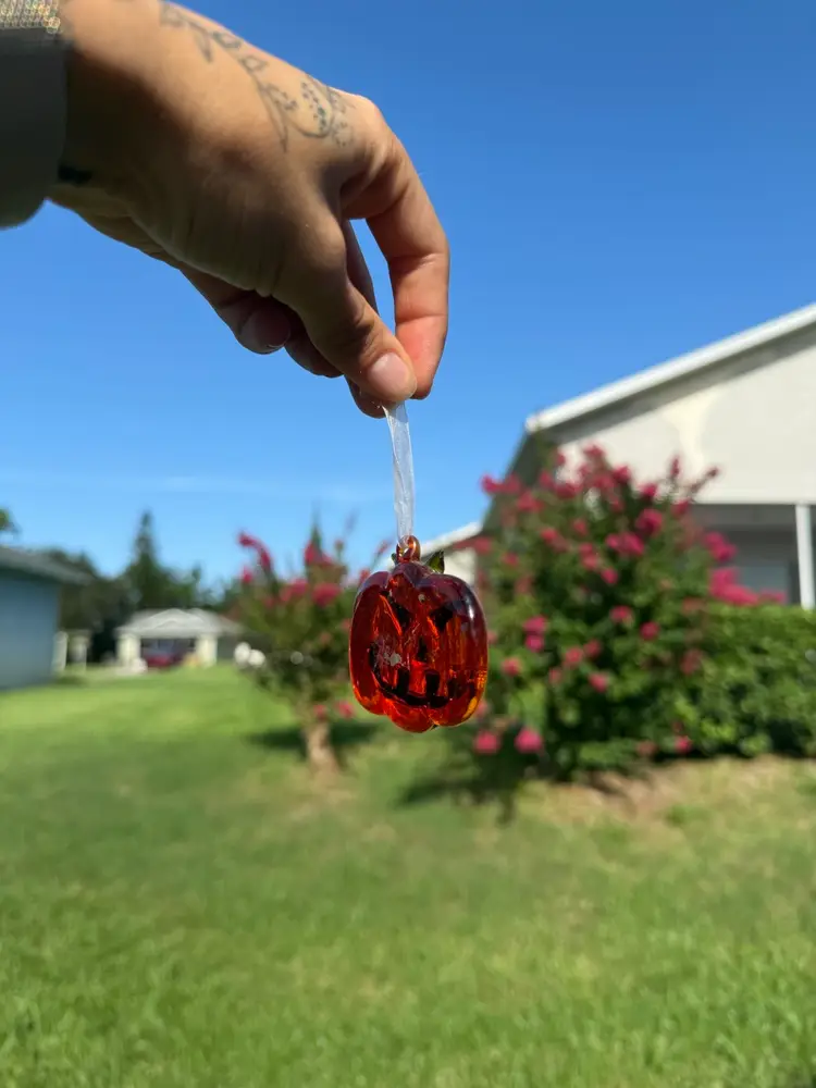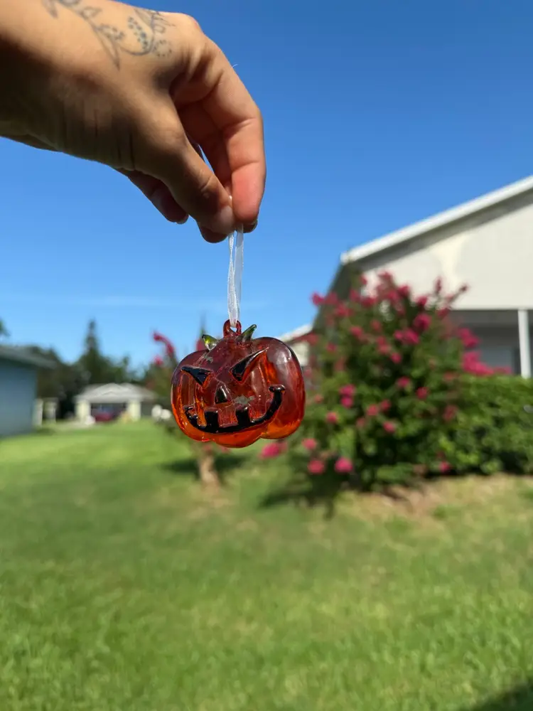 He is very cool heavy glass ornament. In good shape there is some paint or color peeling on the back. No chips.