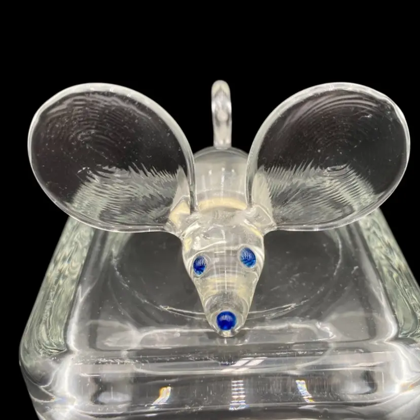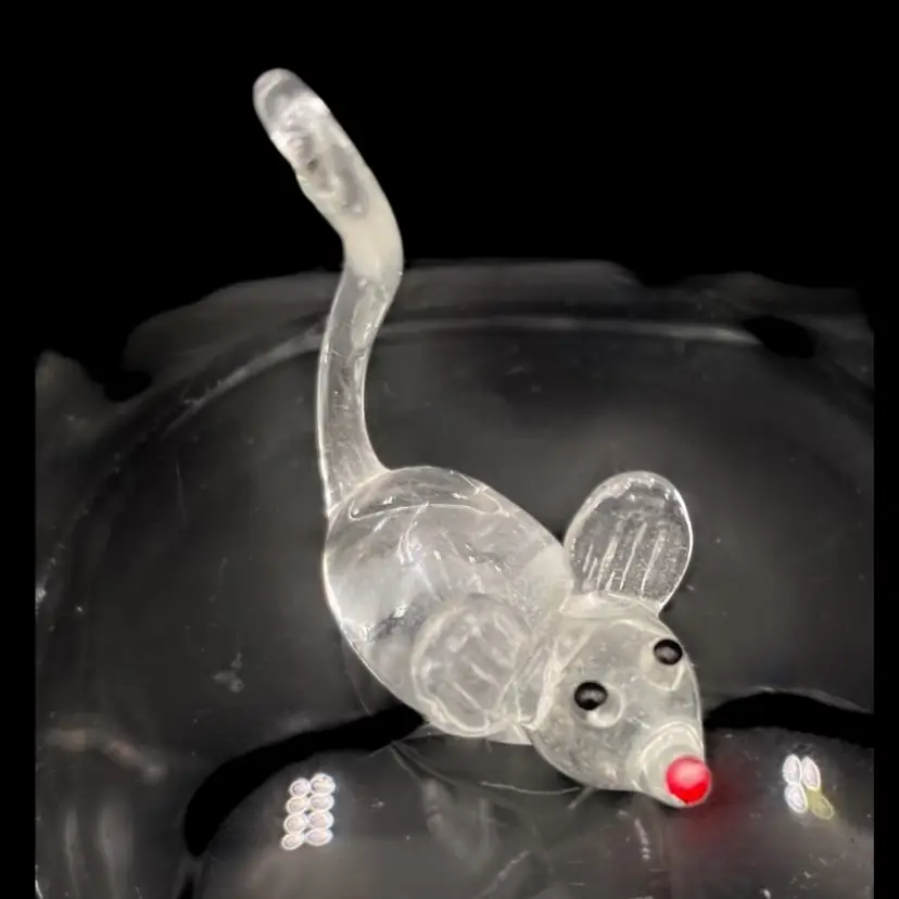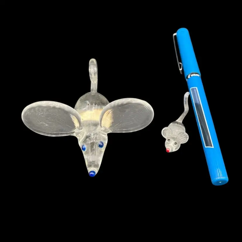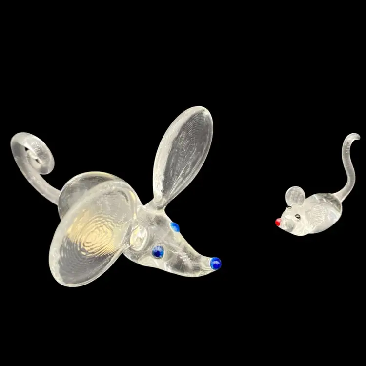 Add a touch of whimsy to your collection with this charming set of vintage spun glass mice figurines. Handmade with care, these delicate pieces measure less than a few inches tall and feature textured ears and colored glass facial glass for added detail.