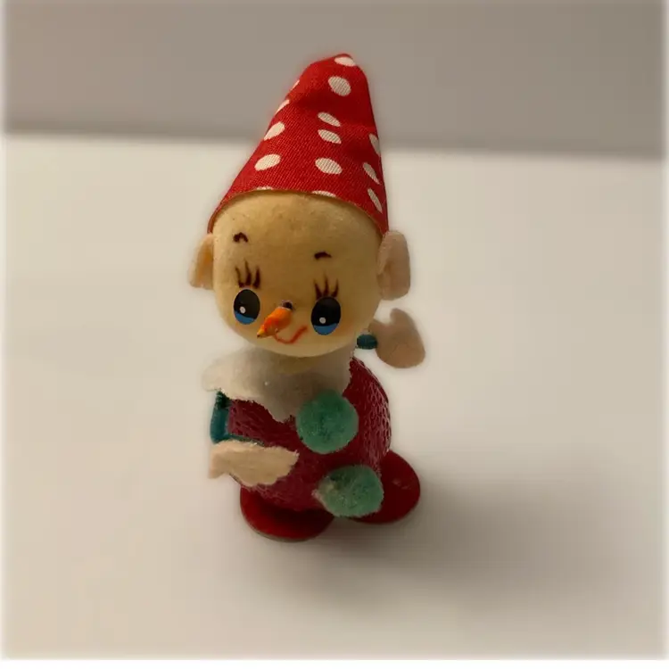 Vintage spun head elf ornament or pick. There was a wire in the bottom which was lose so I removed it. I will include it. The elf measures about 1 1/2” x 3 1/2” tall. Made in Japan.