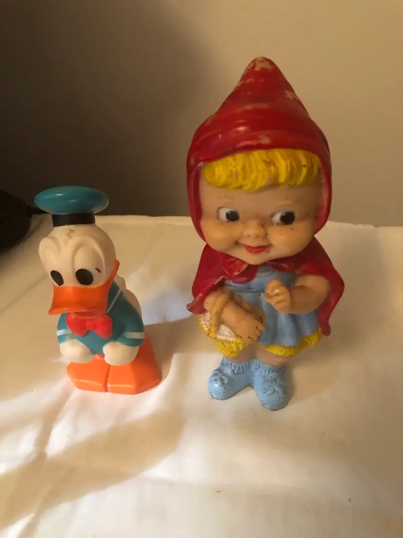 Donald Duck and Little Red Riding Hood. Red riding hood could use some paint touch up