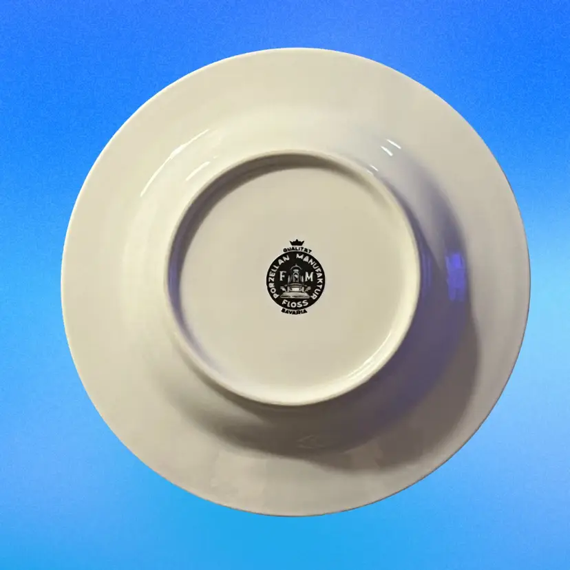 Trimmed in gold; two ports. Approx 5” wide x 5/8”; marked FM Porzellan Manufaktur Bavaria; good condition; no issues.