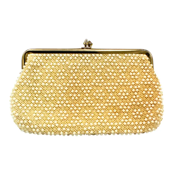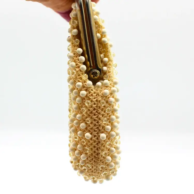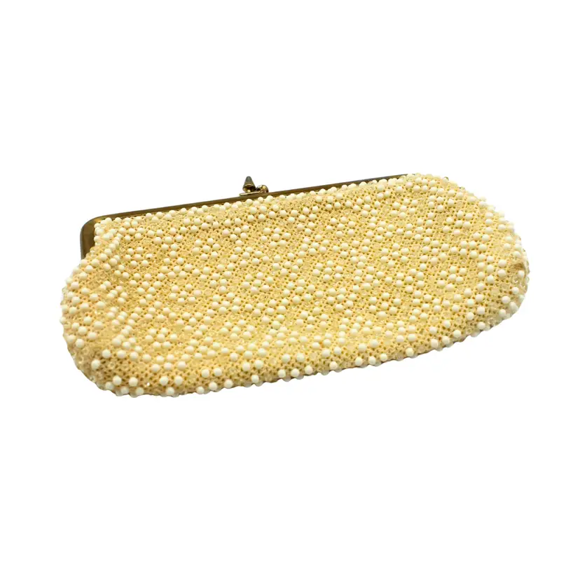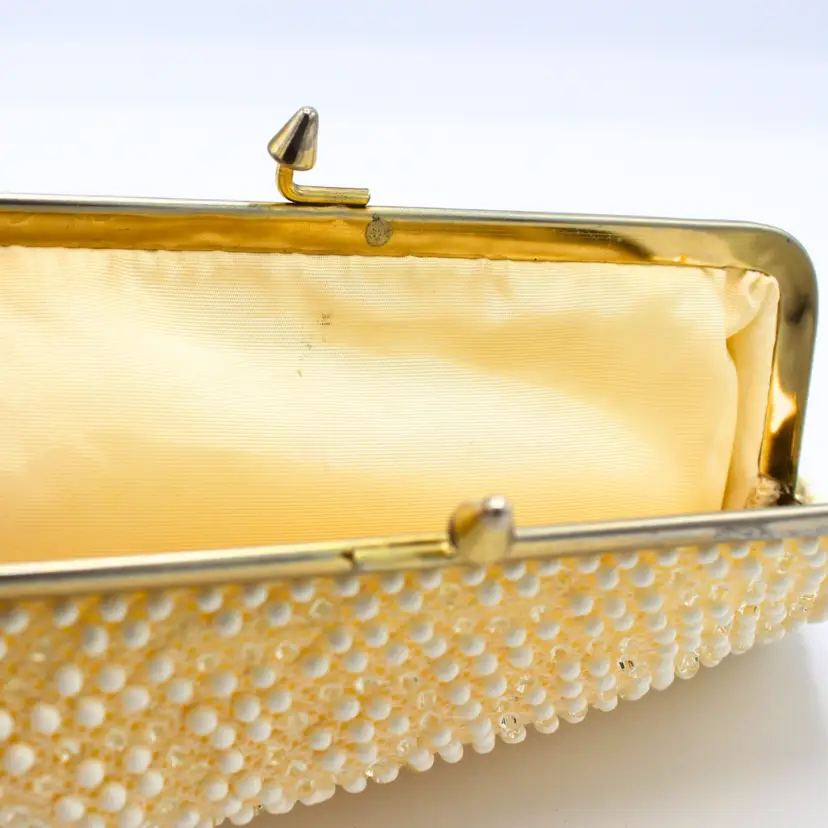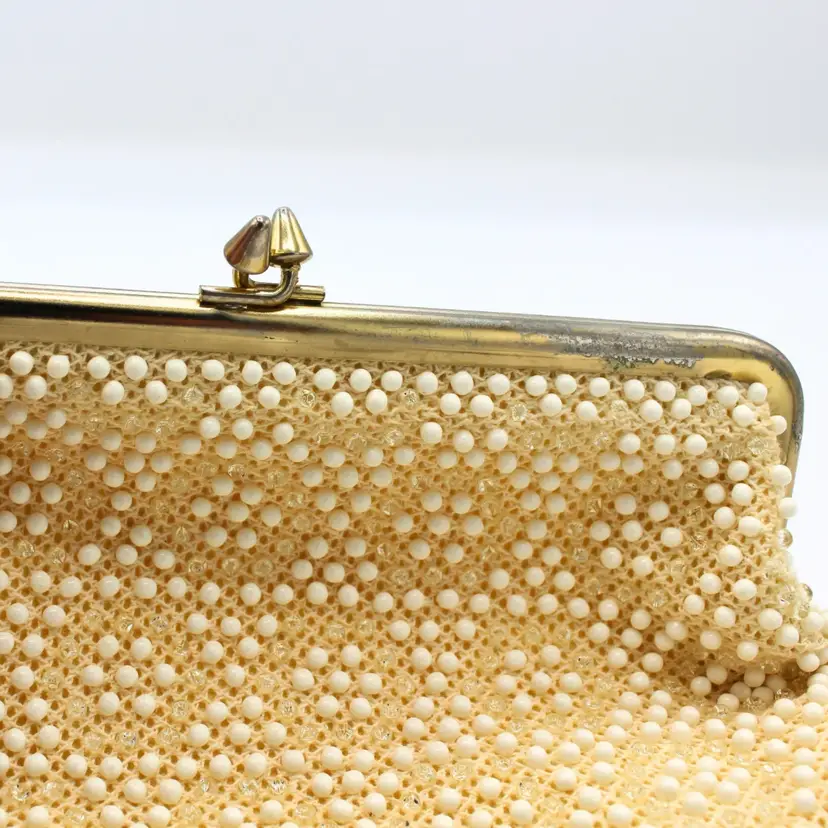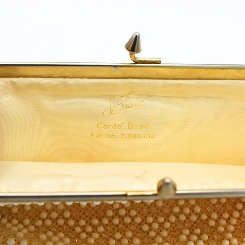 Vintage St. Thomas Corde Cream Beaded Clutch | 1950s Beaded Purse with Gold Metal Frame & Kiss Lock | Elegant Evening Bag