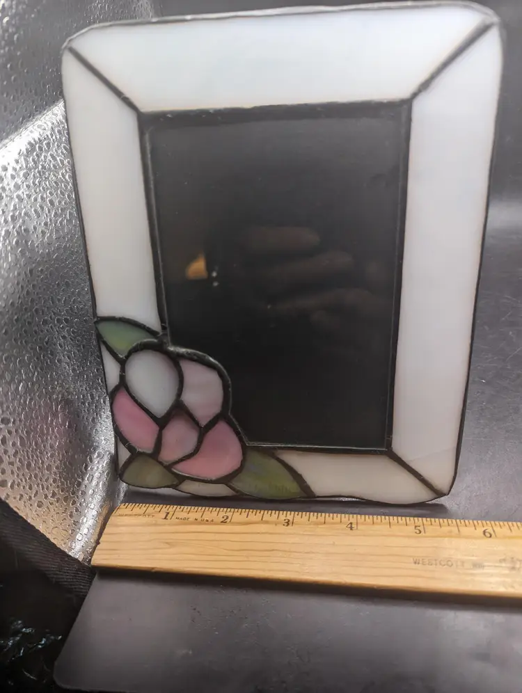 This is a lovely Vintage Stained Glass Floral Photo Frame. Add a touch of elegance to your decor with this vintage stained glass photo frame. Featuring a charming floral design, it's perfect for showcasing your favorite memories.