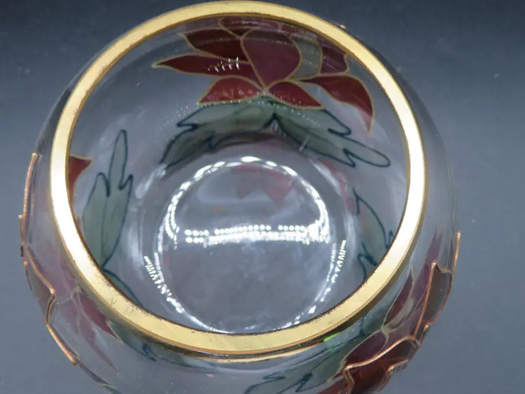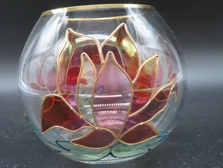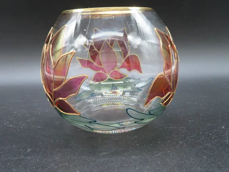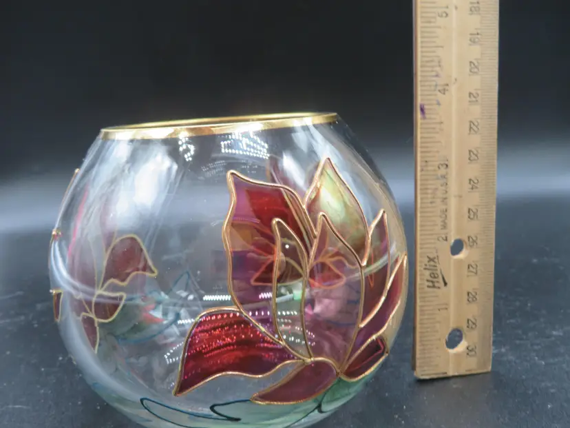 Item Description: For your consideration is a charming vintage rose bowl/vase featuring a stained glass floral design with elegant gold accents. This piece is perfect for adding a touch of vintage charm to any room. The vase is free of any chips or nips. Please review all photos for condition. Dimensions: Please refer to photos for size details. It stands 4" tall with a 4.5" dia. Shipping: I ship daily; all items are securely packaged in foam & bubble wrap to protect your investment. Thank you for viewing my item, please check out my other listings!