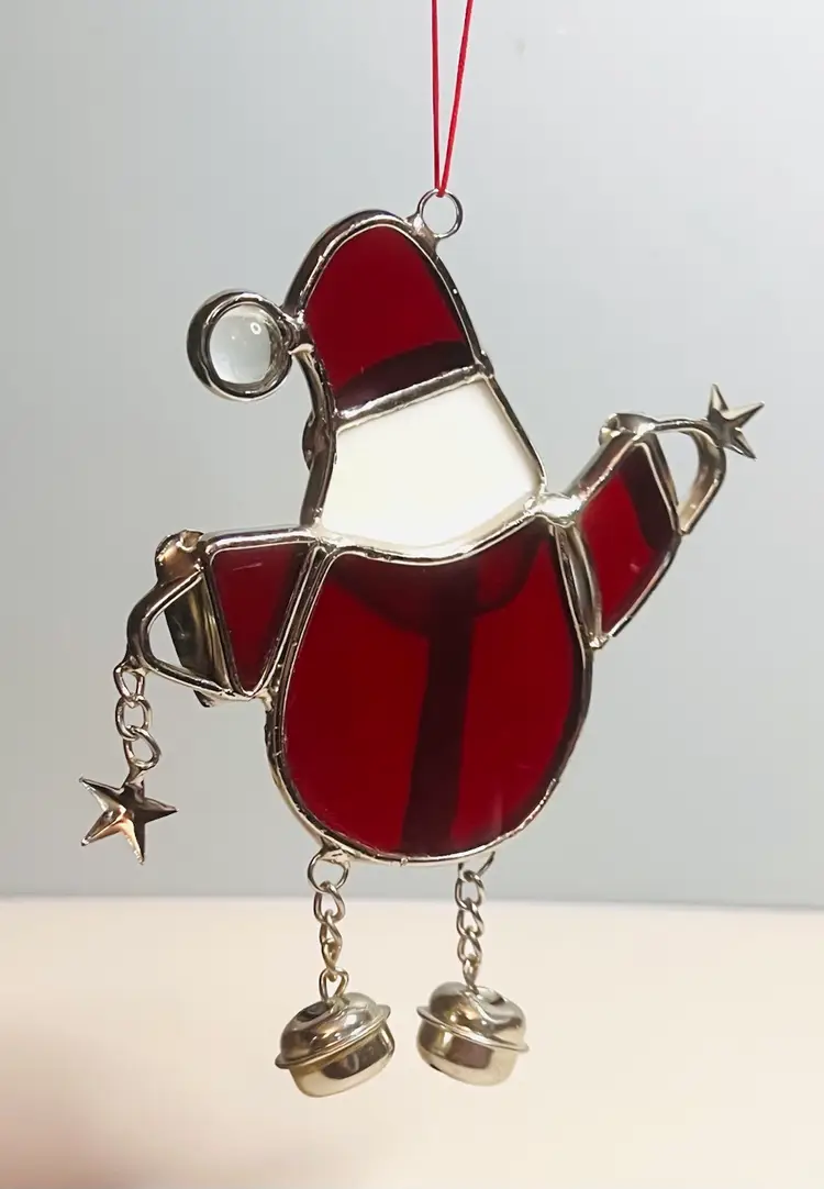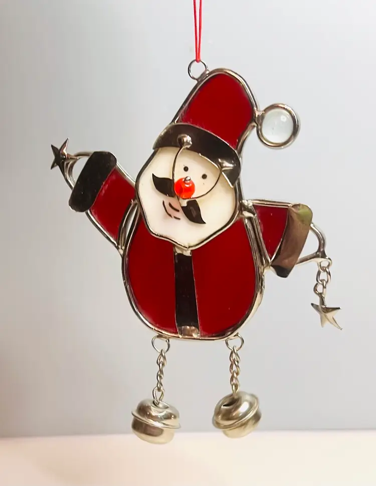 Leaded stained glass Santa Claus hanging. 5 1/4”. No chips or cracks