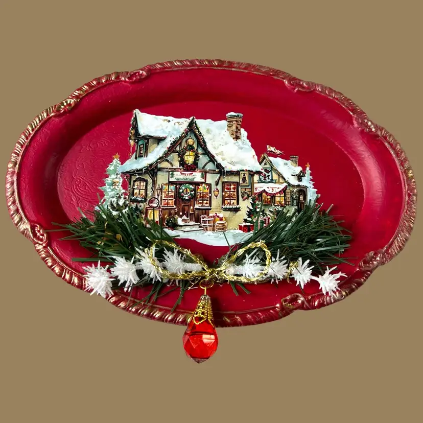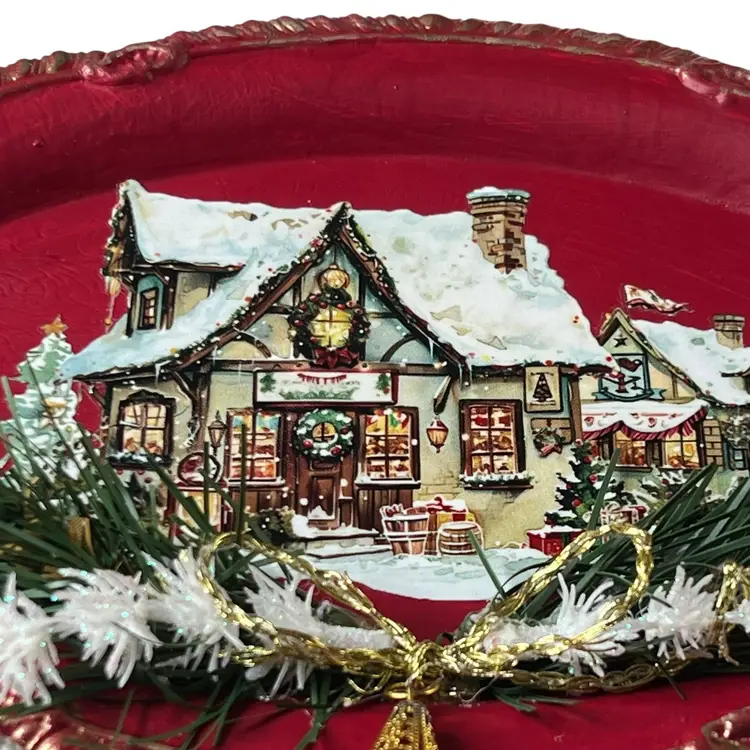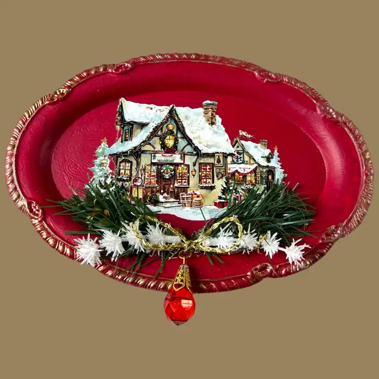 Vintage Stainless Steel 9.5" X 7" Upcycled Christmas Tray