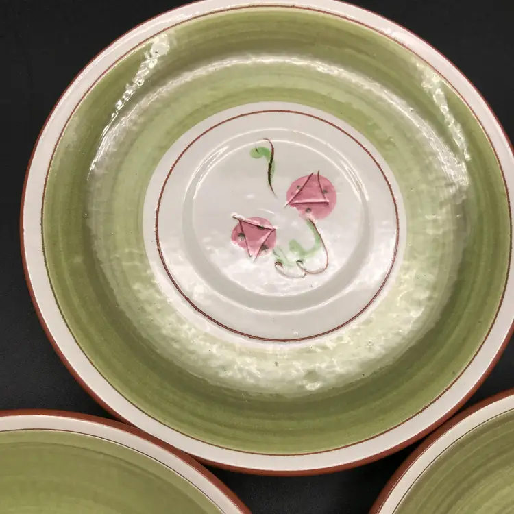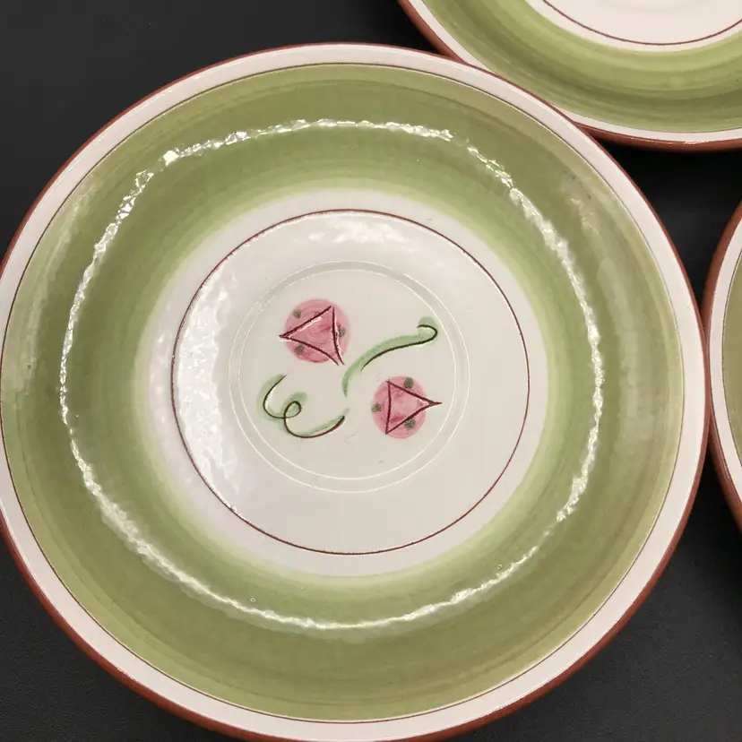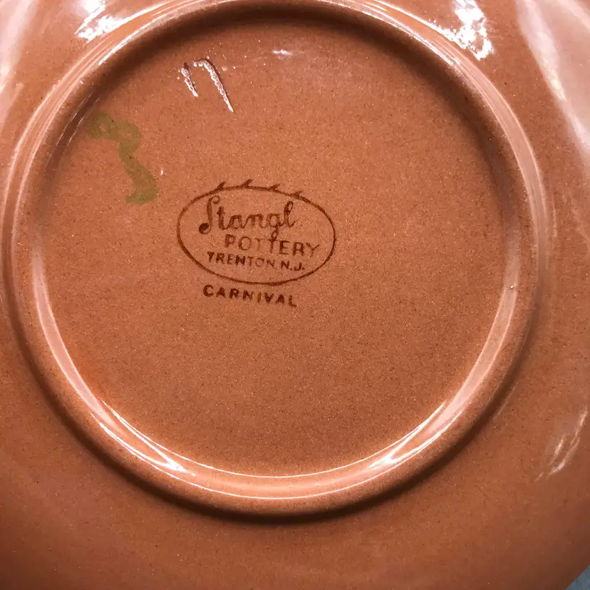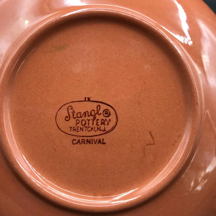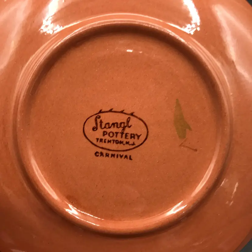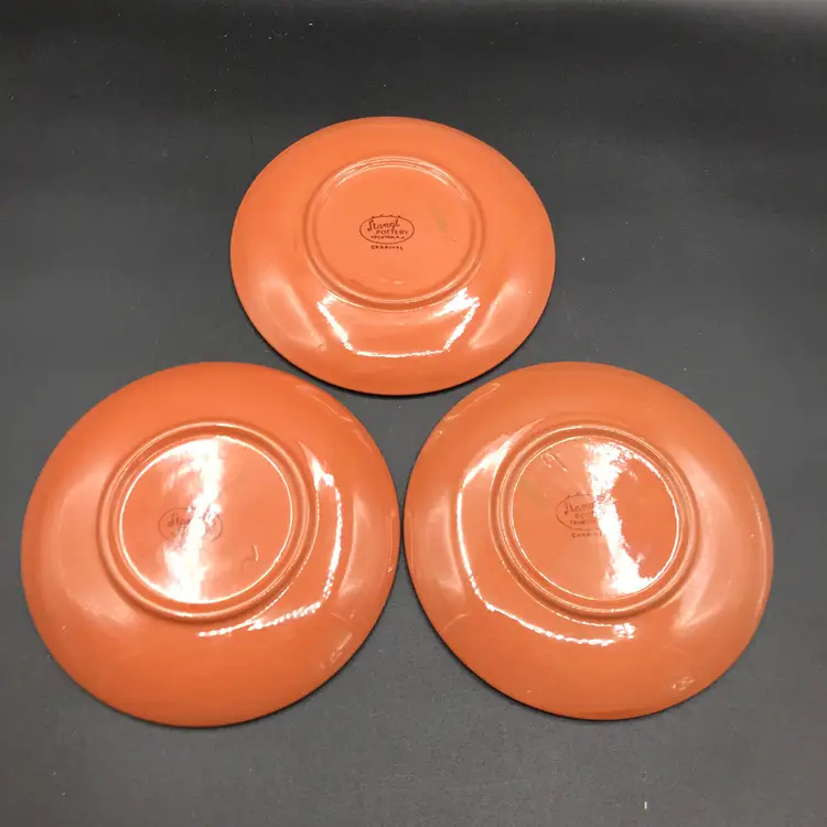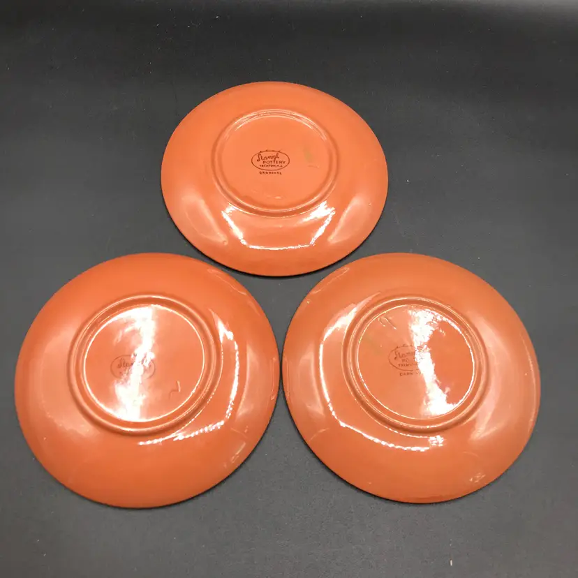 These are a set of 3 Vintage Stangl Pottery Carnival Saucers Set of 3 replacements showcases the captivating beauty of mid-century modern design, crafted between 1955 and 1978. Each saucer features the distinctive Carnival design, characterized by vibrant colors and intricate hand-painted patterns that bring a touch of retro charm to any table setting. These saucers are perfect companions for your favorite teacups, or they can be used as small plates for serving treats or snacks. With their high-quality craftsmanship and durable glaze, these saucers offer lasting appeal for collectors and enthusiasts of vintage pottery.