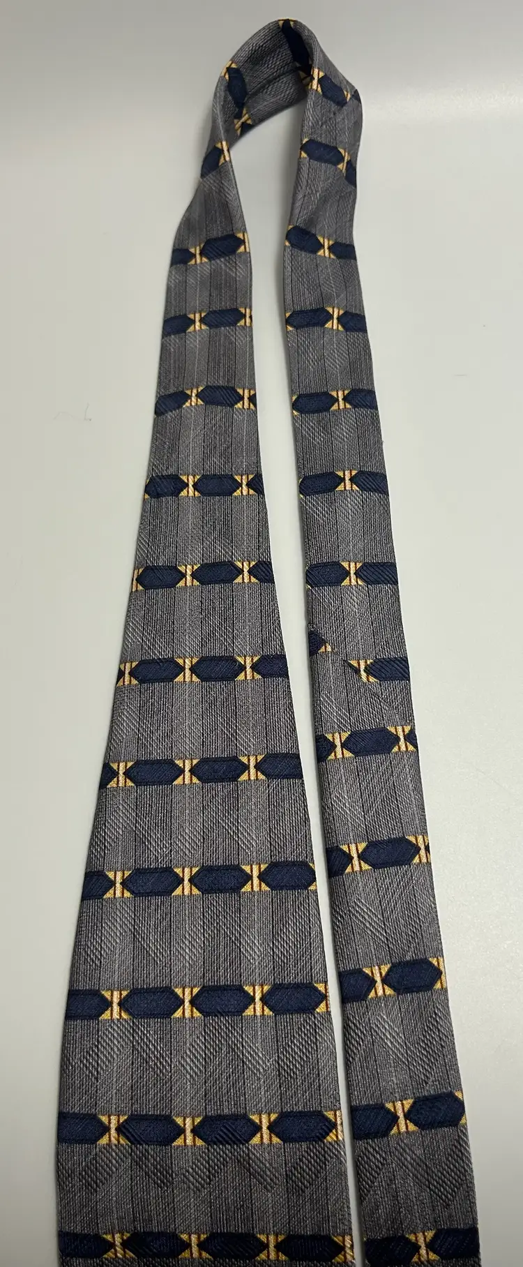 Ties will be looked over for major defects such as - large stains, loose threads, holes etc. and will be noted. Vintage ties could have wear due to use and age. Please enlarge all photos for overall condition and wear. So please expect pilling, stray threads etc that are not noted. They may have to be spot cleaned, pressed, labels may need to be sewn back on etc. Due to the differences in the lighting, fabric textures, and your computer settings, colors can differ slightly when received.