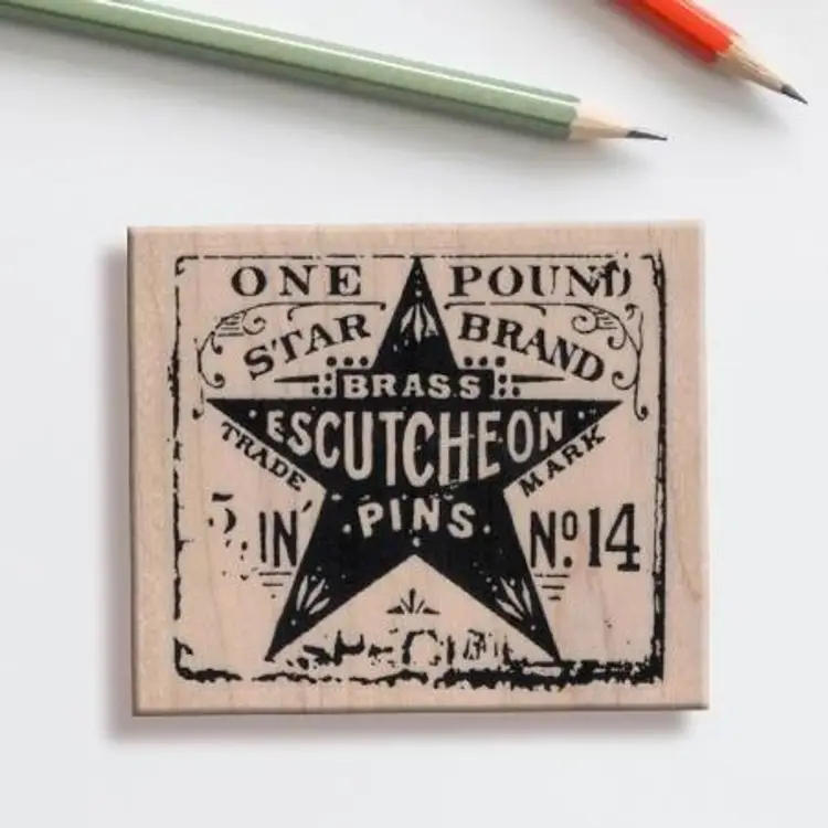 Vintage Star Brand Brass Pins Sewing Rubber Stamp Size: 2-3/4 x 2-1/4 inches Red Rubber Handmade • Great for junk journals, collage, card making, mixed media projects, tags, sewing and craft projects.