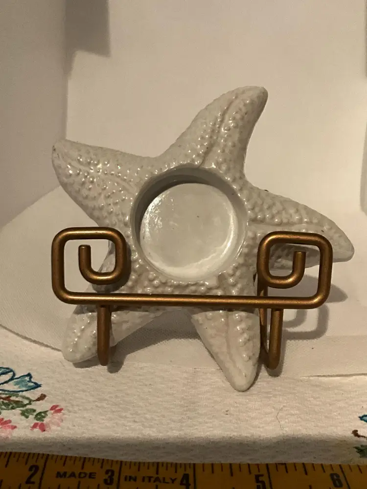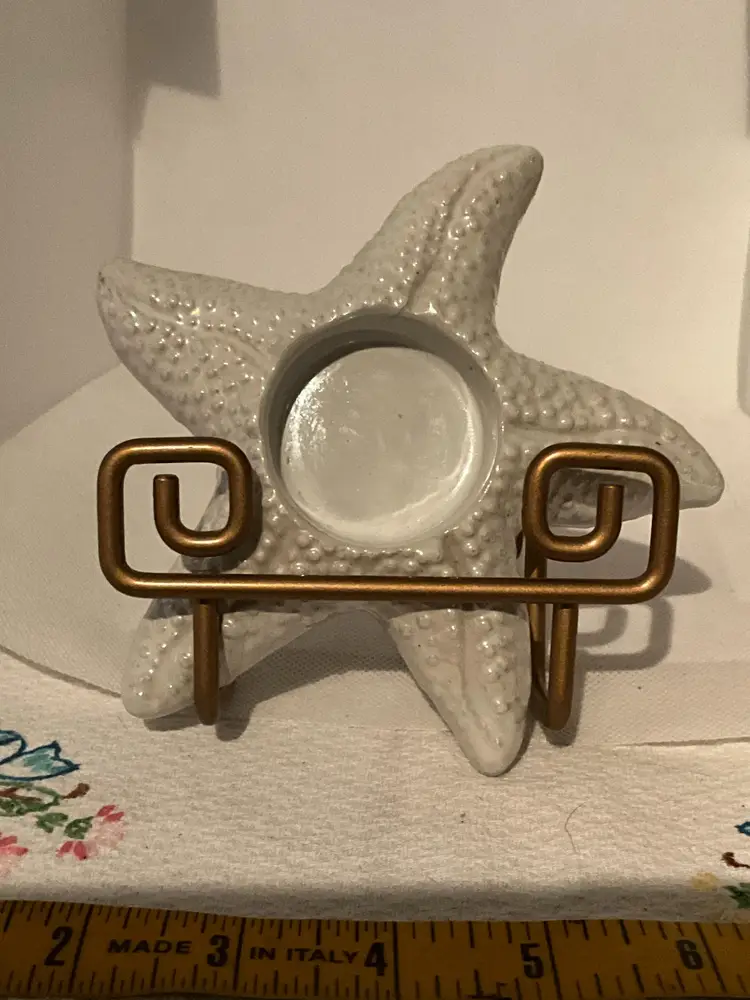 This charming vintage Pottery Barn ceramic candle holder is shaped like a starfish, adding a touch of coastal charm to your decor. Perfect for holding a small candle or tealight. Excellent condition. Please refer to the pictures for details.