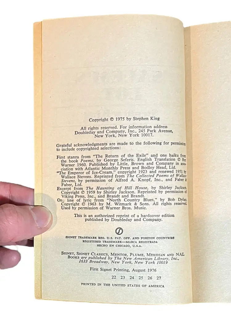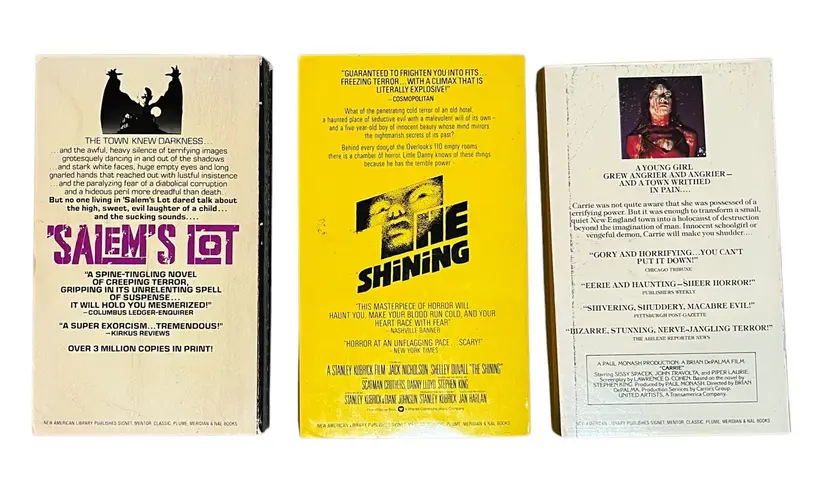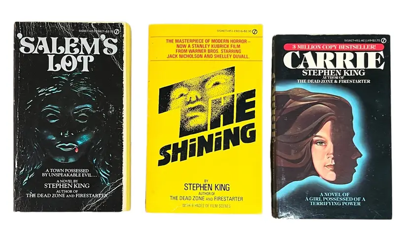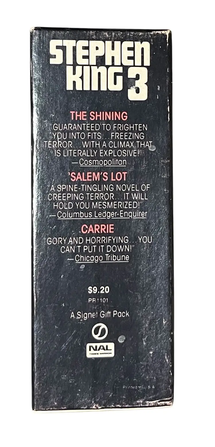 This is a circa 1980 3 Book Box Set. The box exhibits some wear, as does the Salem's Lot book, while the Shining and Carrie books are in very nice condition.